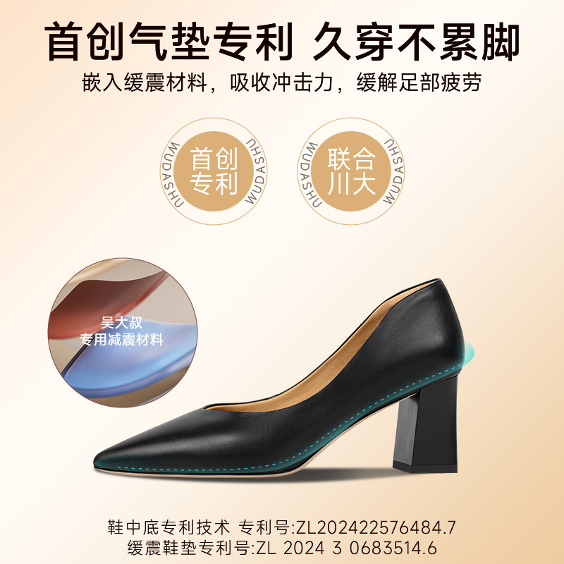 吴大叔粗跟高跟鞋女鞋黑色通勤尖头超软羊皮小单鞋气质高级不累脚