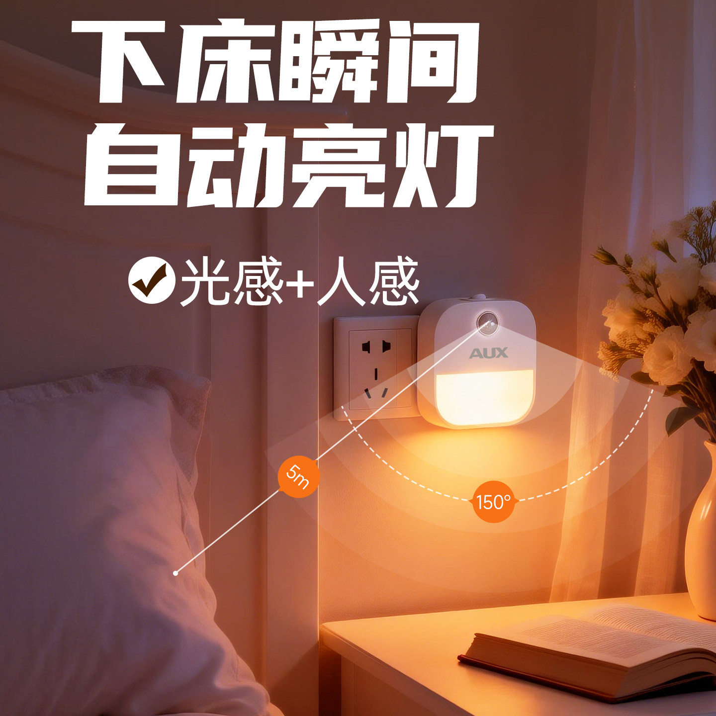 奥克斯光控人体节能感应灯卧室插电款床头睡眠婴儿喂奶起夜护眼灯
