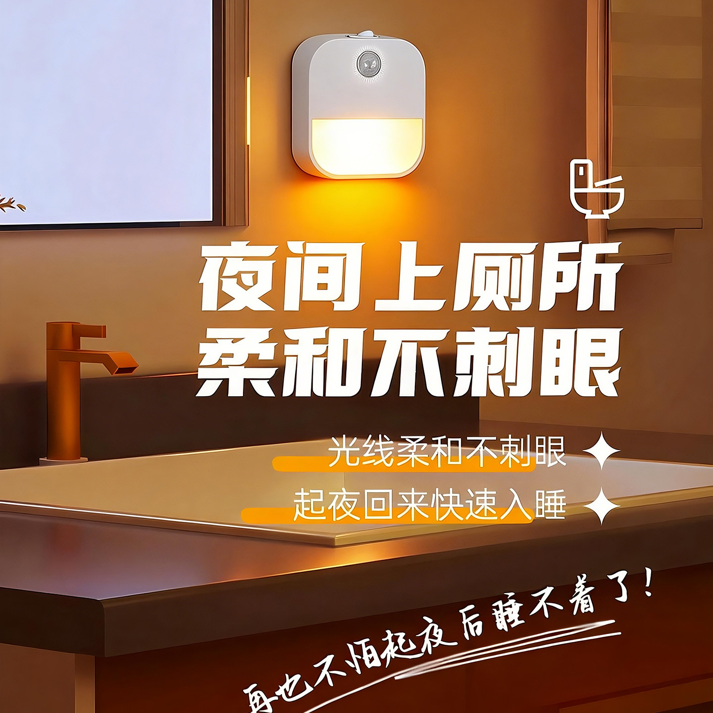 自动人体感应灯起夜卧室婴儿喂奶护眼壁侧发光过道充电小夜灯地脚