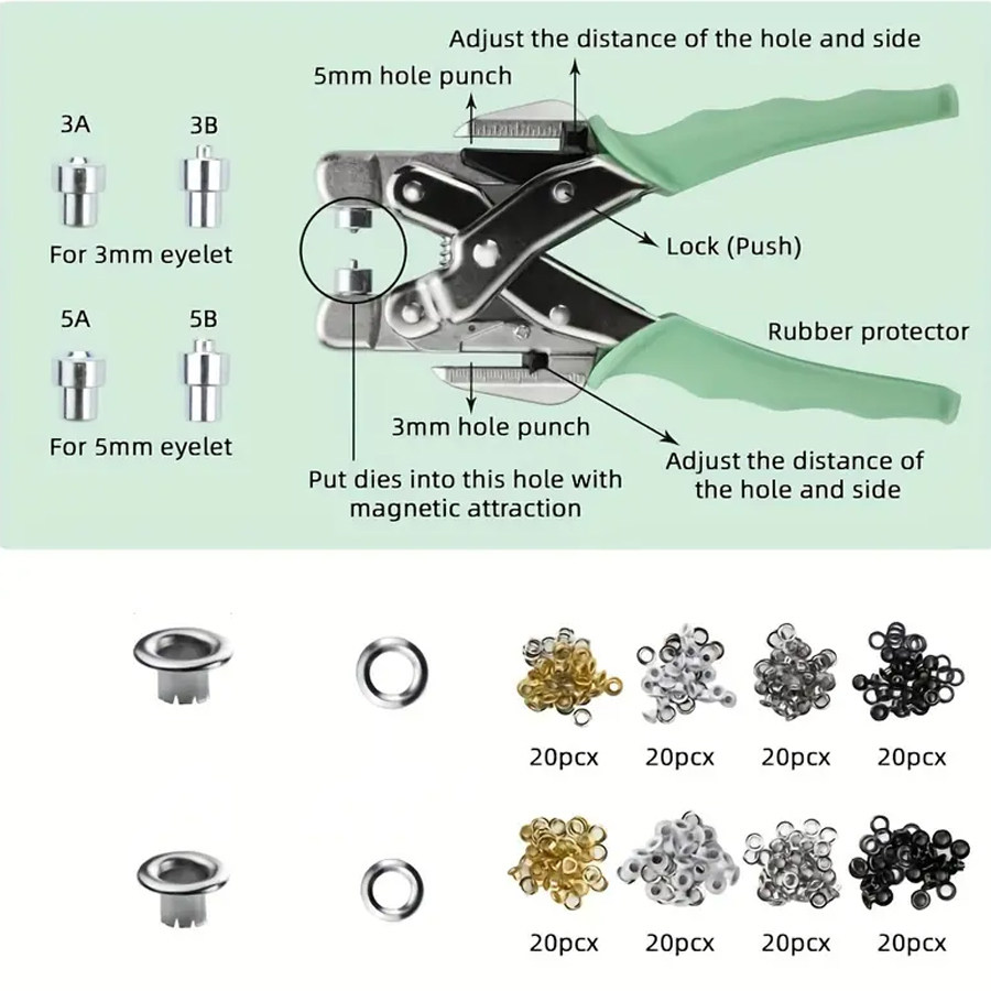 Grommet Tool Kit Punch Pliers鸡眼打孔钳3mm5mm气眼打洞压圈环