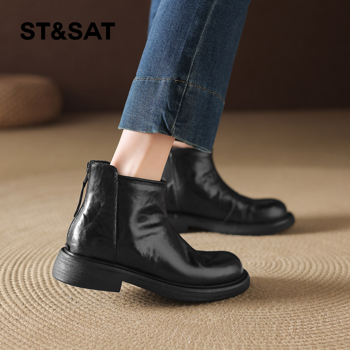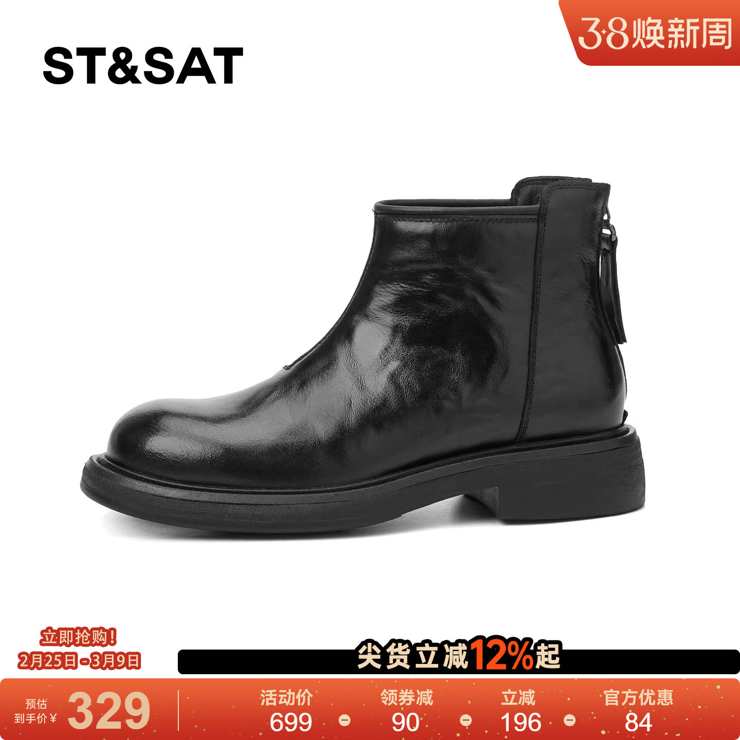 星期六粗跟加绒小短靴女2025新款冬季保暖英伦风复古切尔西马丁靴