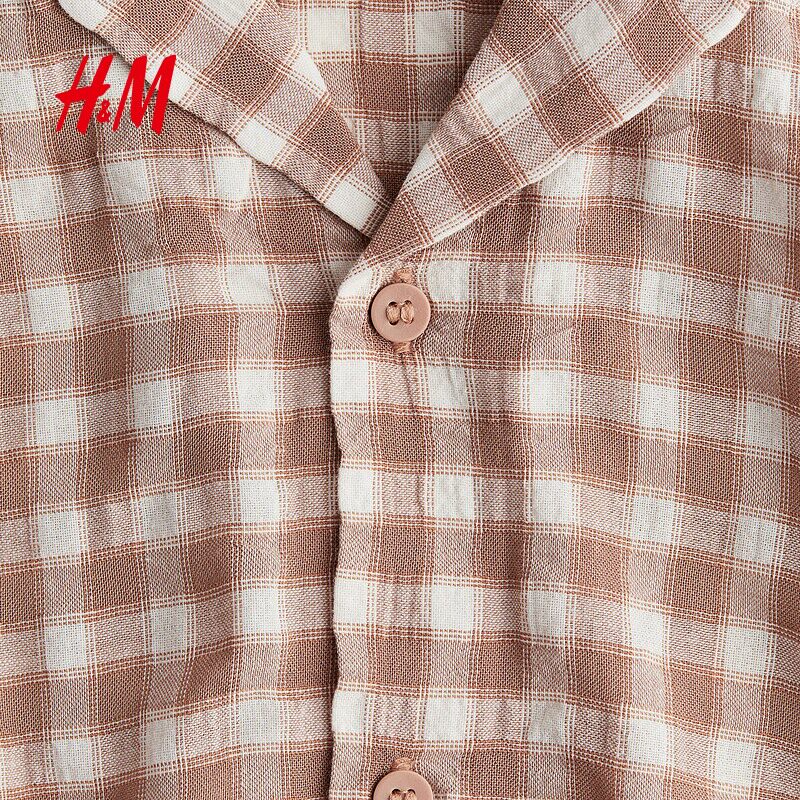 HM童装儿童男童衬衫春季棉混纺古巴领格子衫1289768