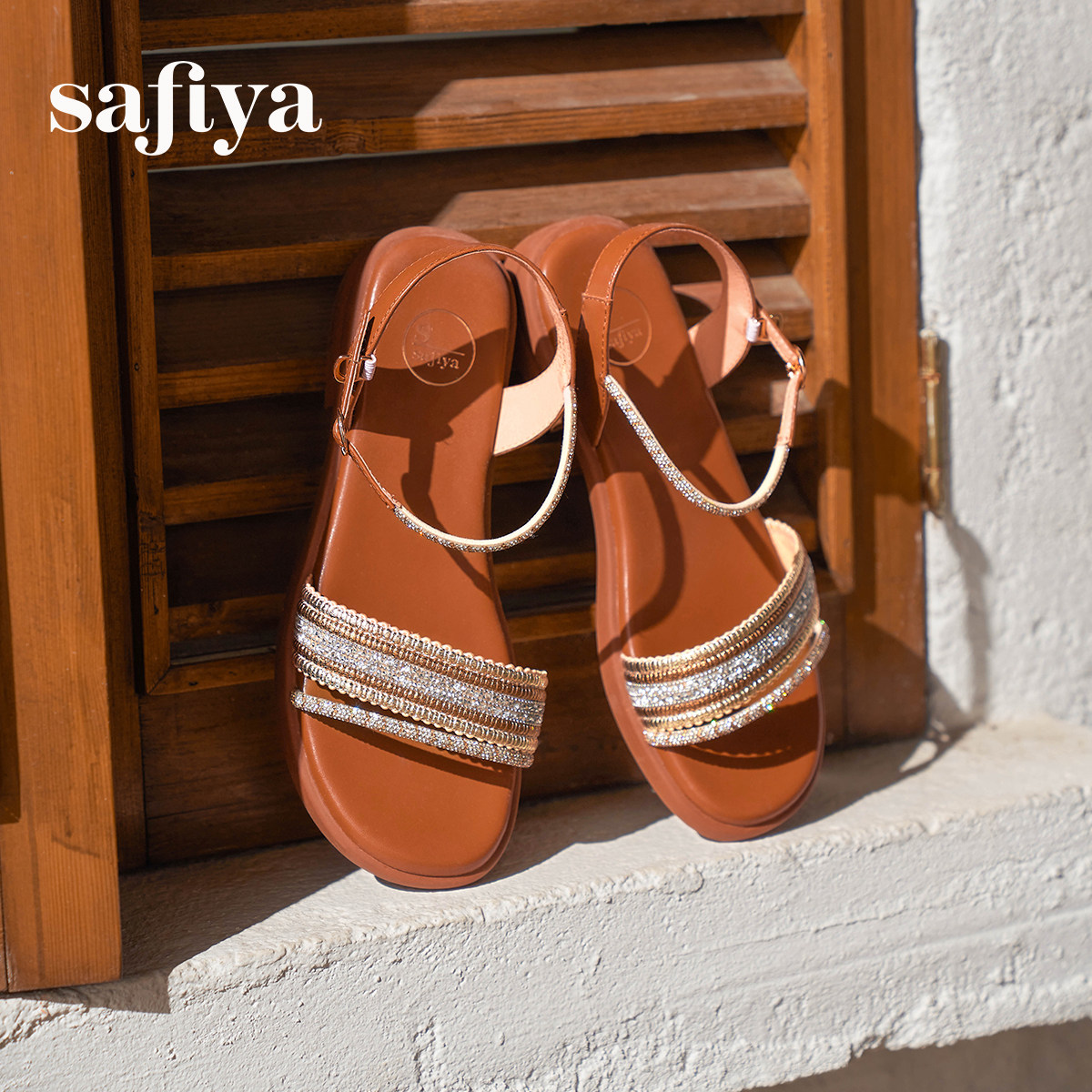 索菲娅2026夏季新品仙女风配裙子水钻一字带度假外穿复古平底凉鞋