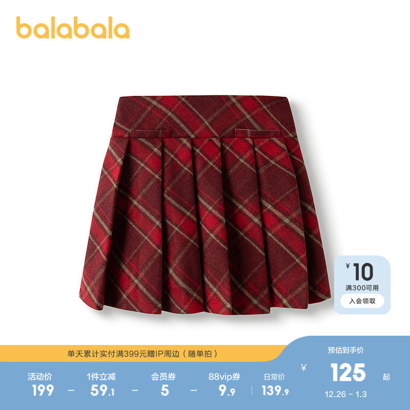 巴拉巴拉童装女童半身裙2025新款春装短裙儿童格纹百褶裙子学院风