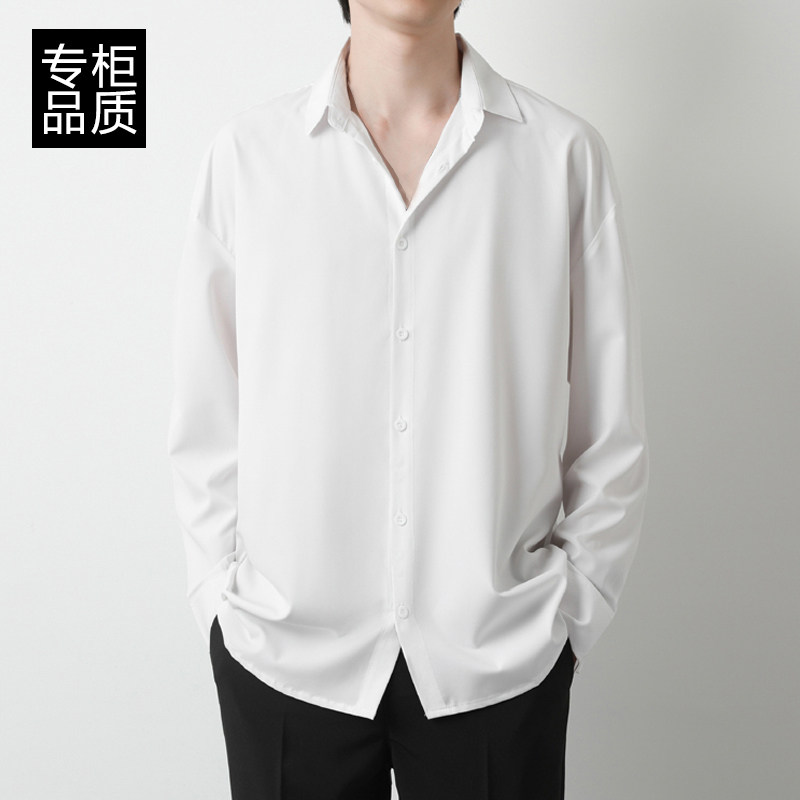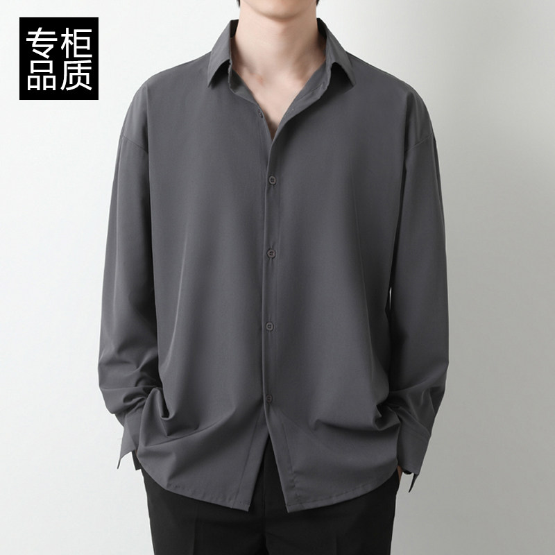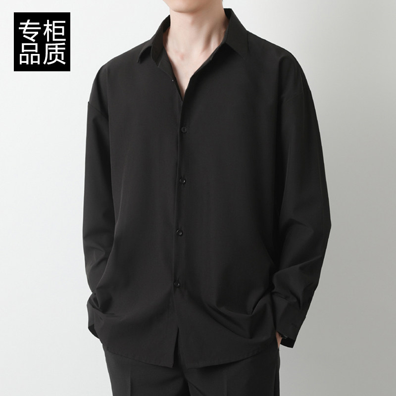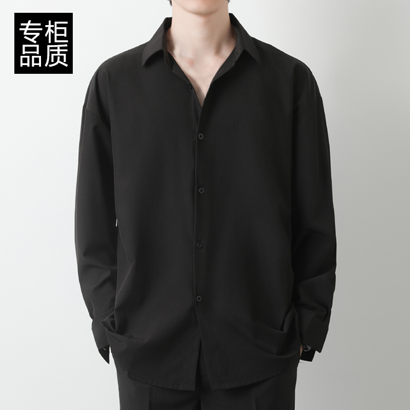黑色衬衫男士长袖高级感痞帅春秋季轻熟风休闲港风外套垂感衬衣男