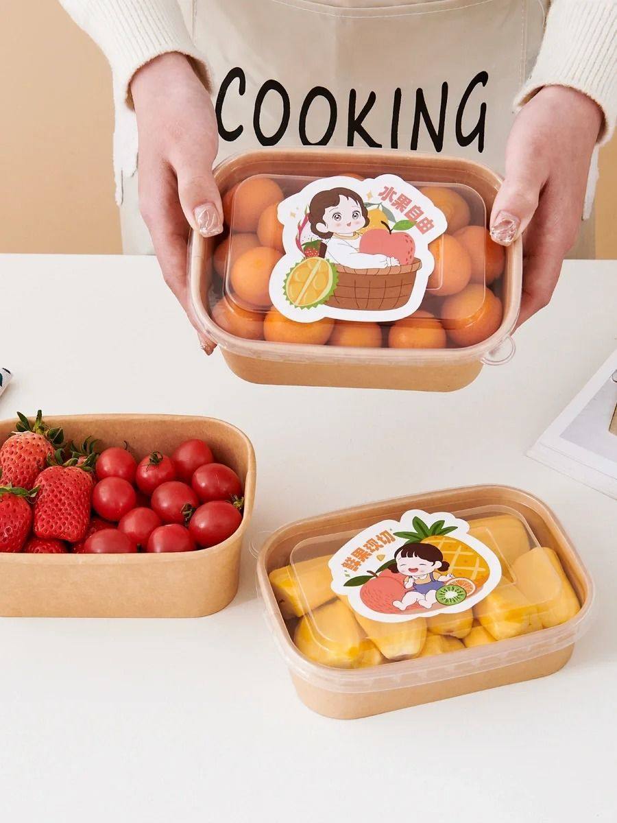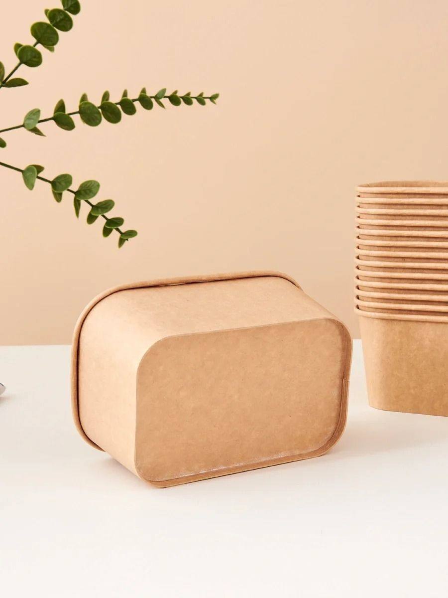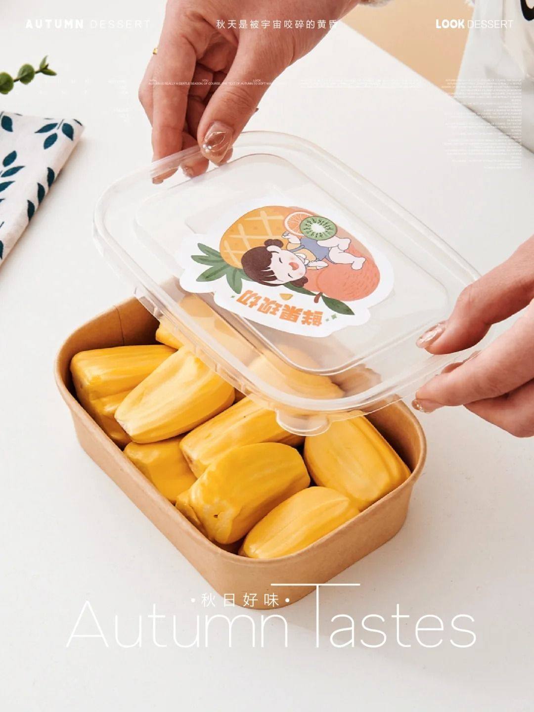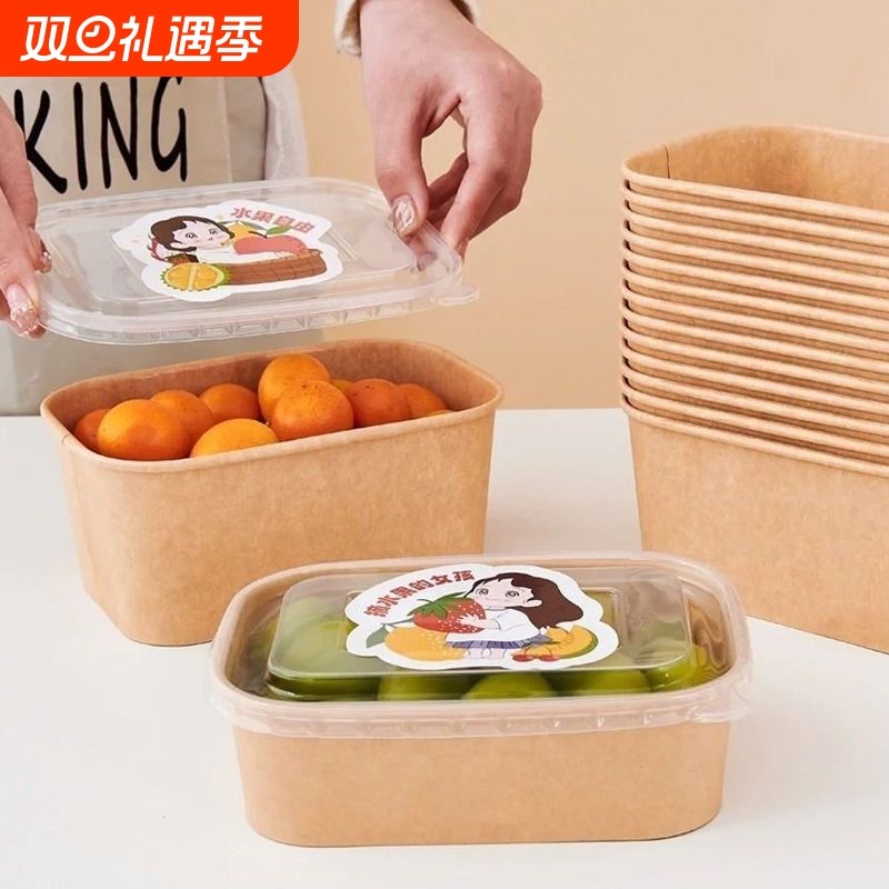 一次性打包盒牛皮纸餐盒长方形外卖便当盒轻食饭盒可微波带盖露营