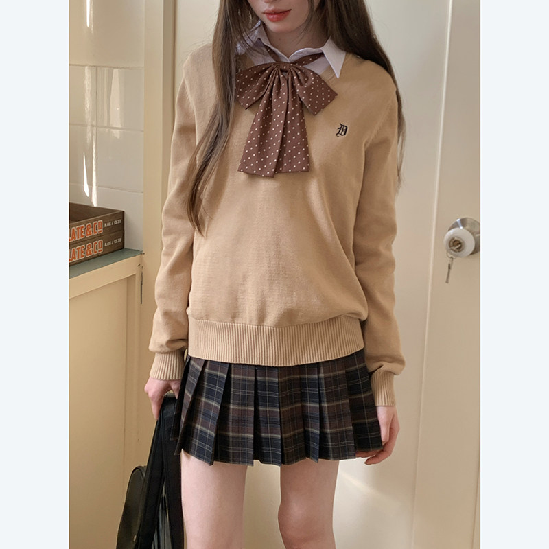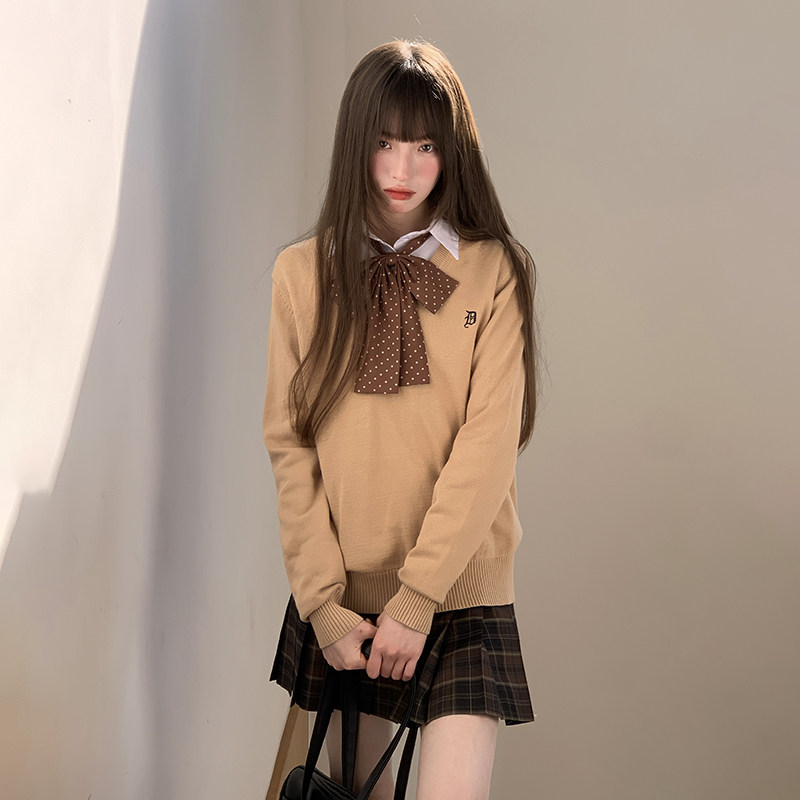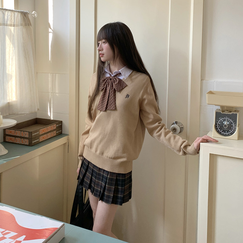 东京岁时记jk毛衣外套春秋棕色V领套头针织女宽松纯棉上衣灰野川