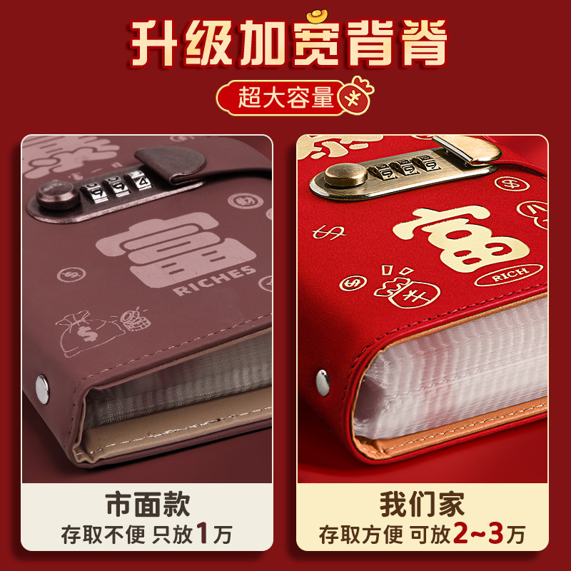 2025年新款存钱本3万密码锁存钱夹钱册现金存钱本大容量只放钱网红可放10万理财纸币百元钞票册袋收纳袋包