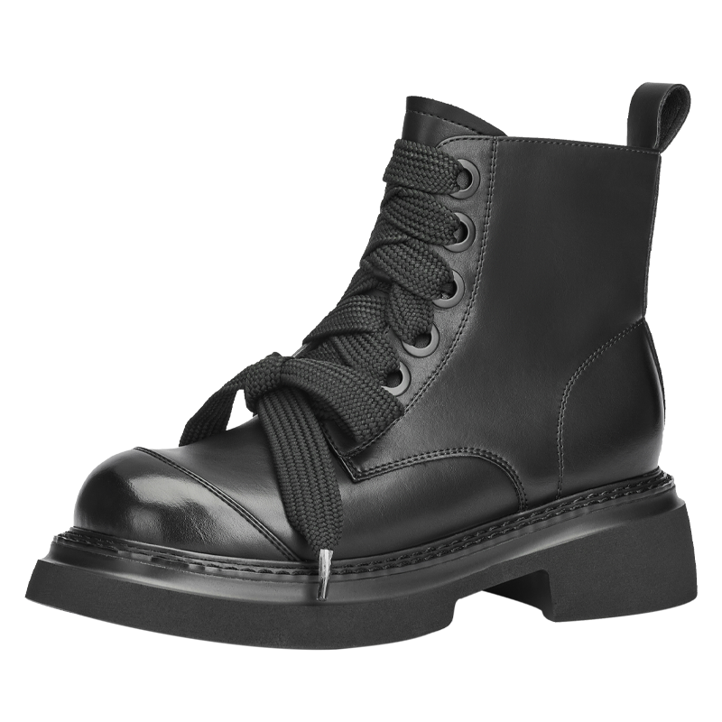 羊皮版~厚底马丁靴女2025新款黑色内增高短靴小个子高跟瘦瘦靴子