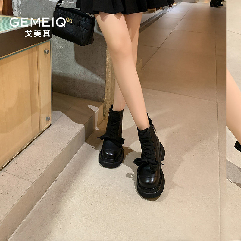戈美其马丁靴女款舒适春季新款厚底英伦风复古短靴圆头百搭瘦瘦靴
