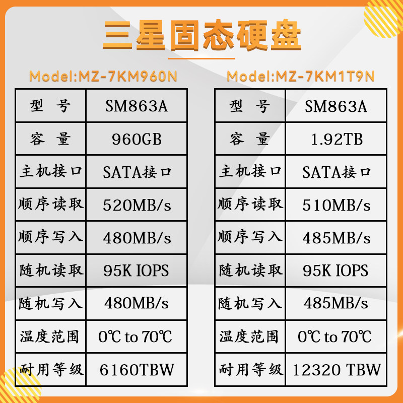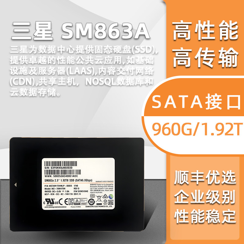 三星SM863A 960G 1.92T MLC 企业级 高速 固态硬盘 SATA 3.0接口