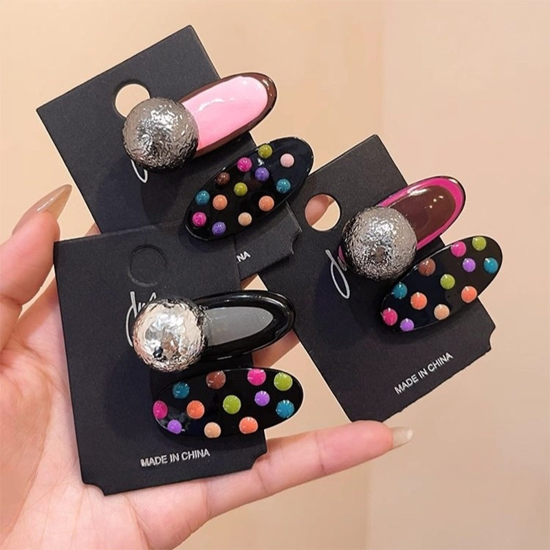 韩国高级感波点发夹鸭嘴夹女时尚百搭侧边夹对夹发饰品2025年新款