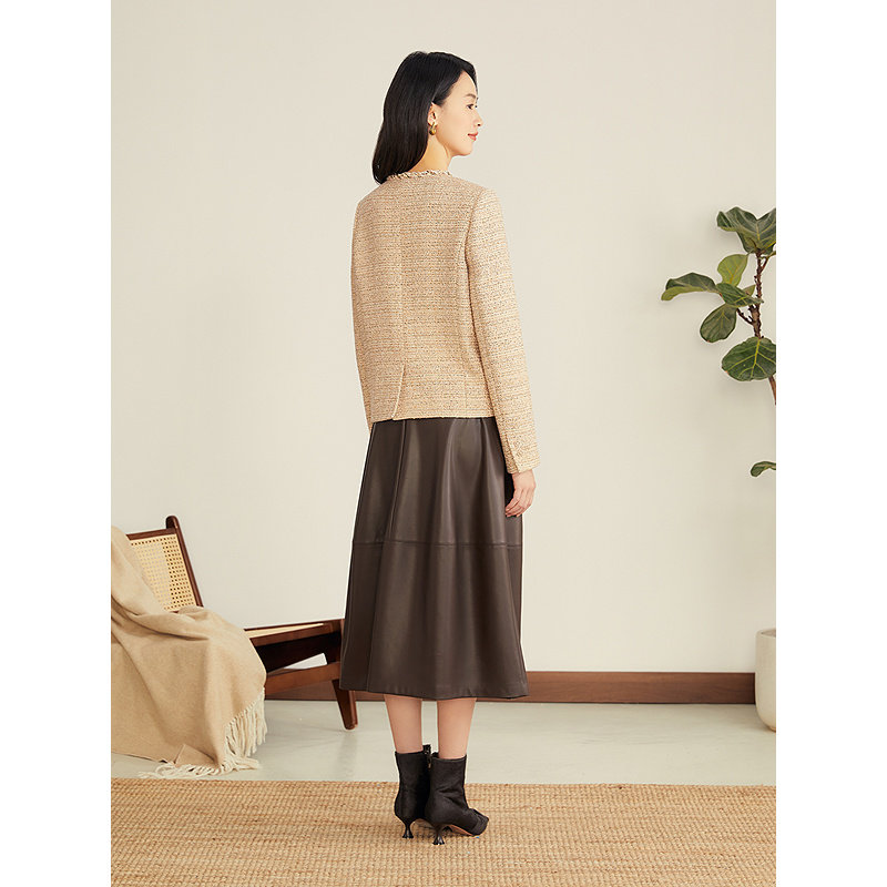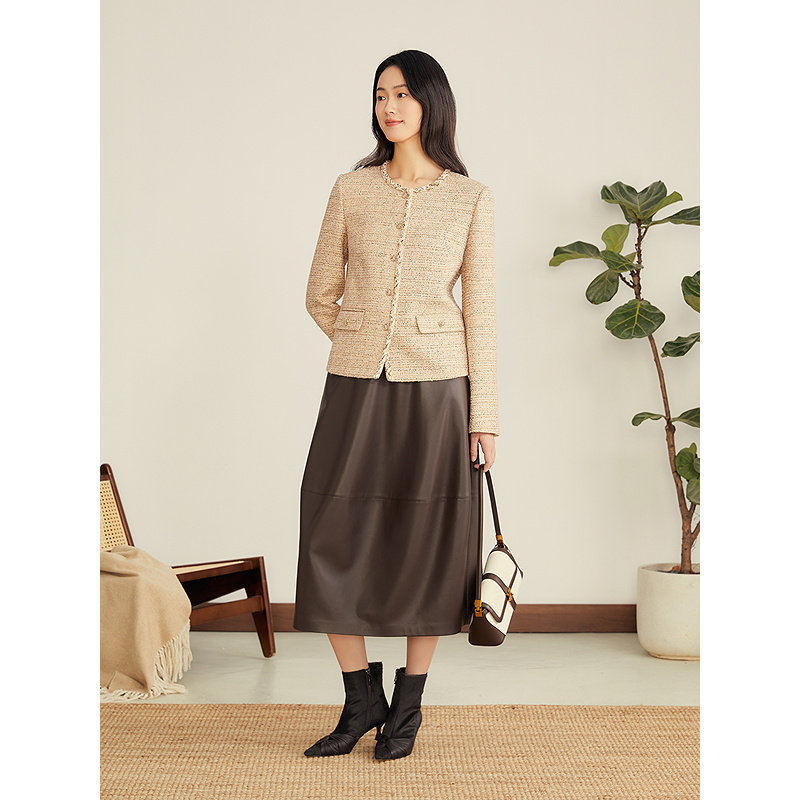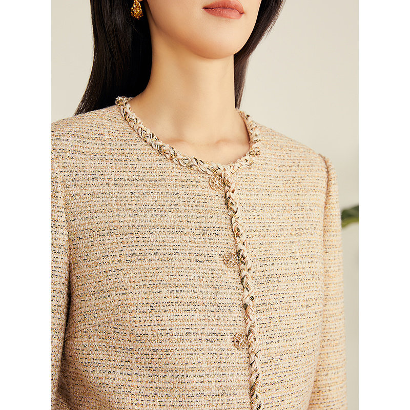 YINER音儿专选2025秋季新款法式小香风羊毛混纺亮丝粗花呢短外套