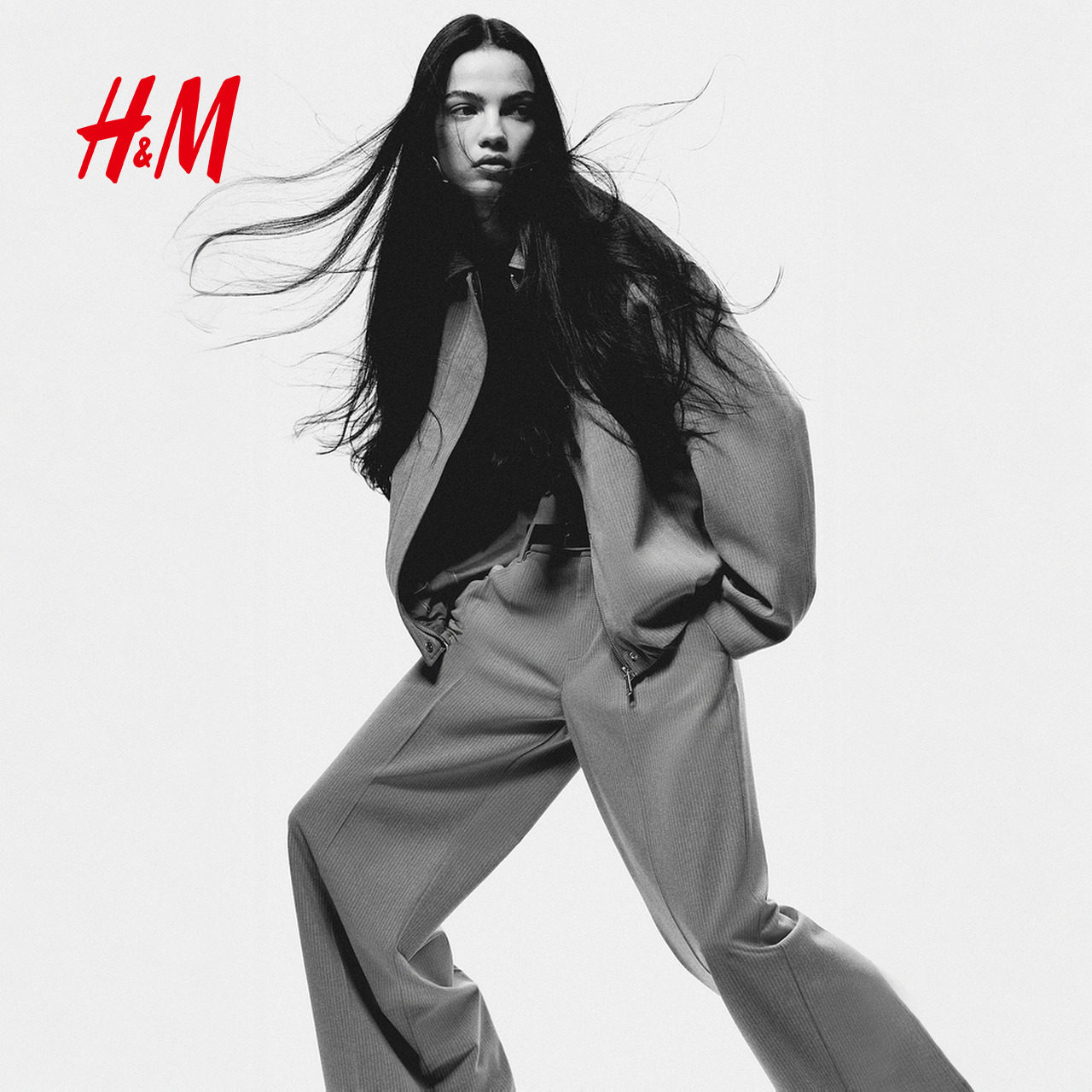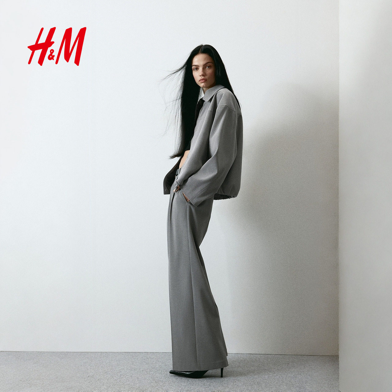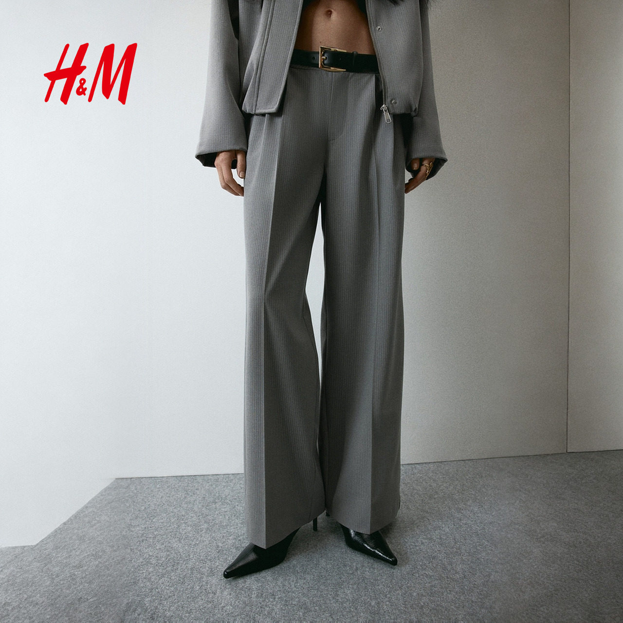 全球花【雅痞美学】大码秋季高级感灰色高腰垂感西装裤斜肩长袖T