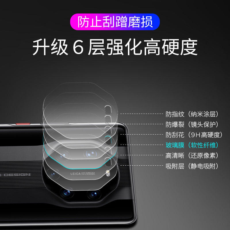华为mate40rs保时捷镜头膜mate40Pro手机摄像头贴膜M40E蓝宝石钢化玻璃保护膜por+后摄相机后背贴膜适用于