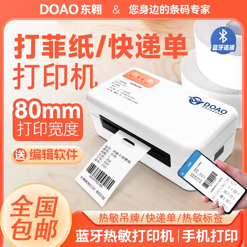 热敏打菲纸80mm宽不干胶快递单打印机蓝牙无线热敏标签条码机电商专用打单机