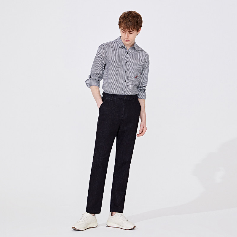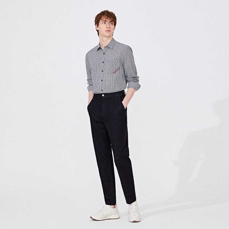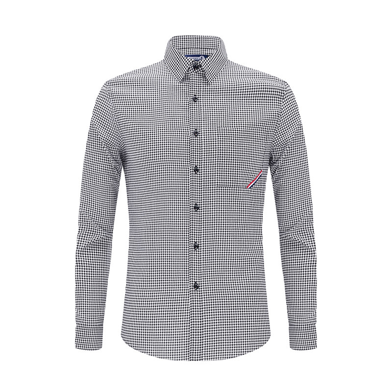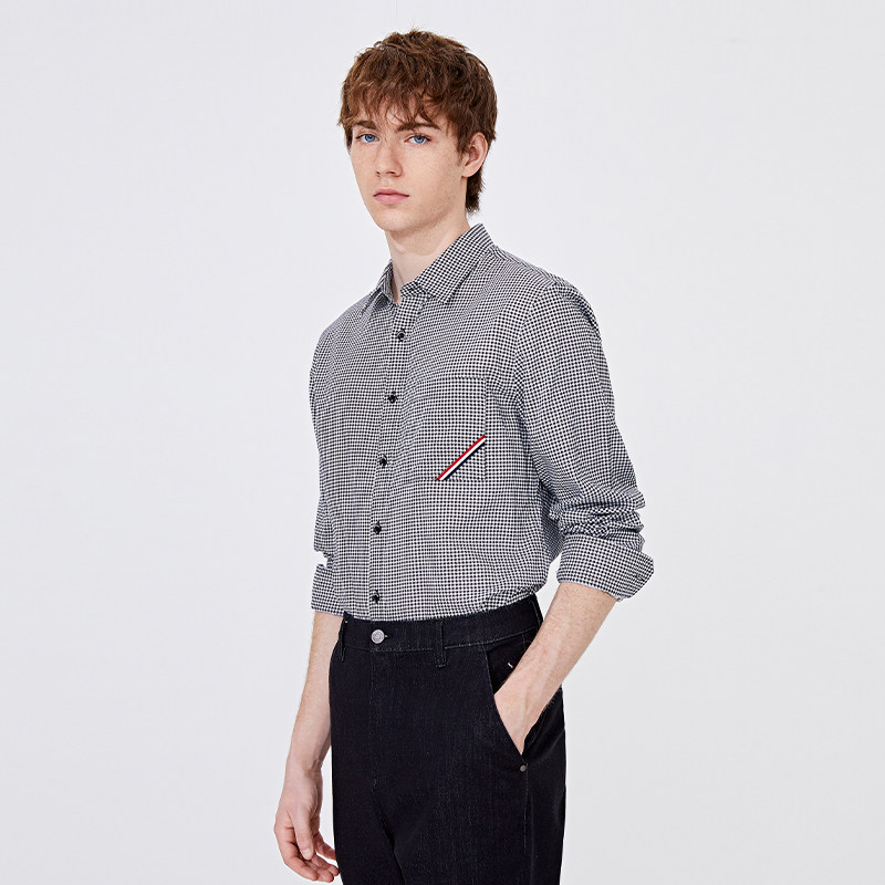 啄木鸟秋季新款男士长袖100%全纯棉磨毛格子衬衫 高级感休闲衬衣