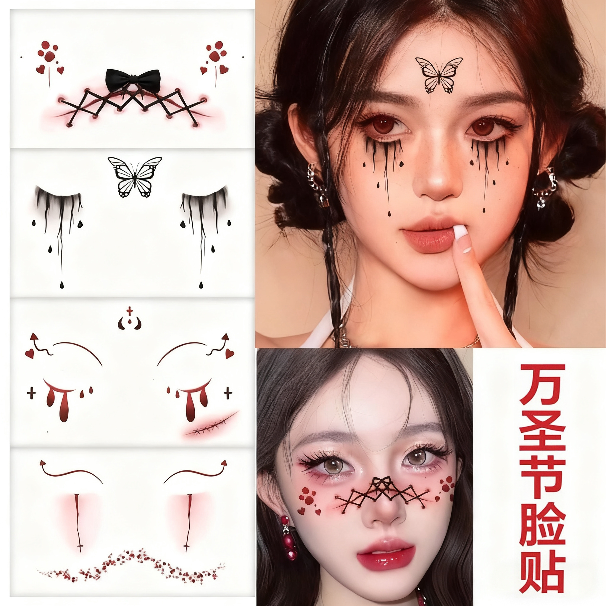2025万圣节脸贴纹身贴纸妆容贴全套套装防水仿真流血假伤疤伤口cosplay化妆容脸部饰品道具
