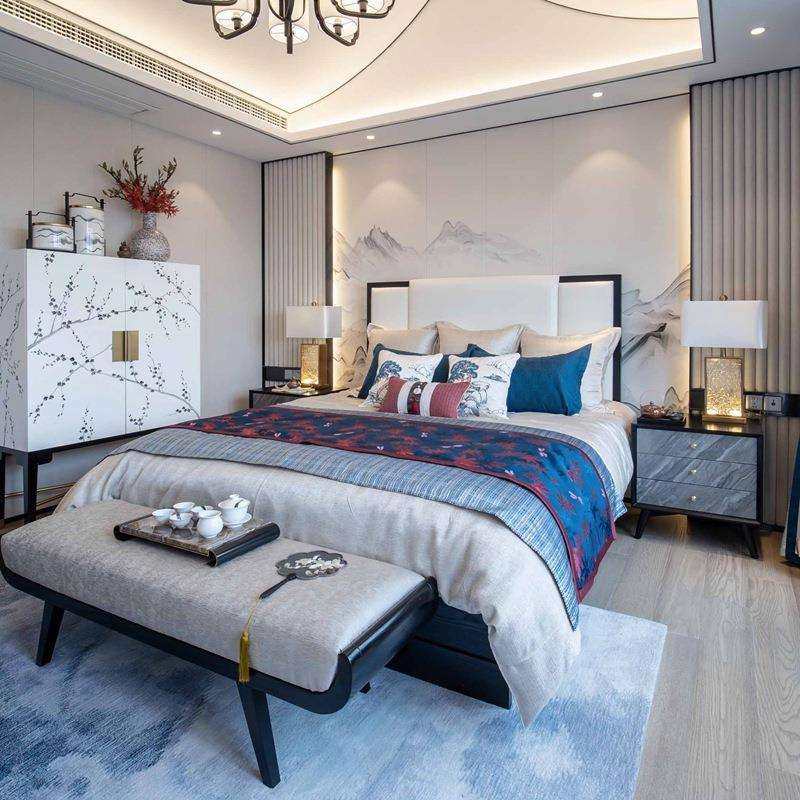 新中式实木床 现代简约 1.8米2米双人床主卧室家具设计布艺床婚床