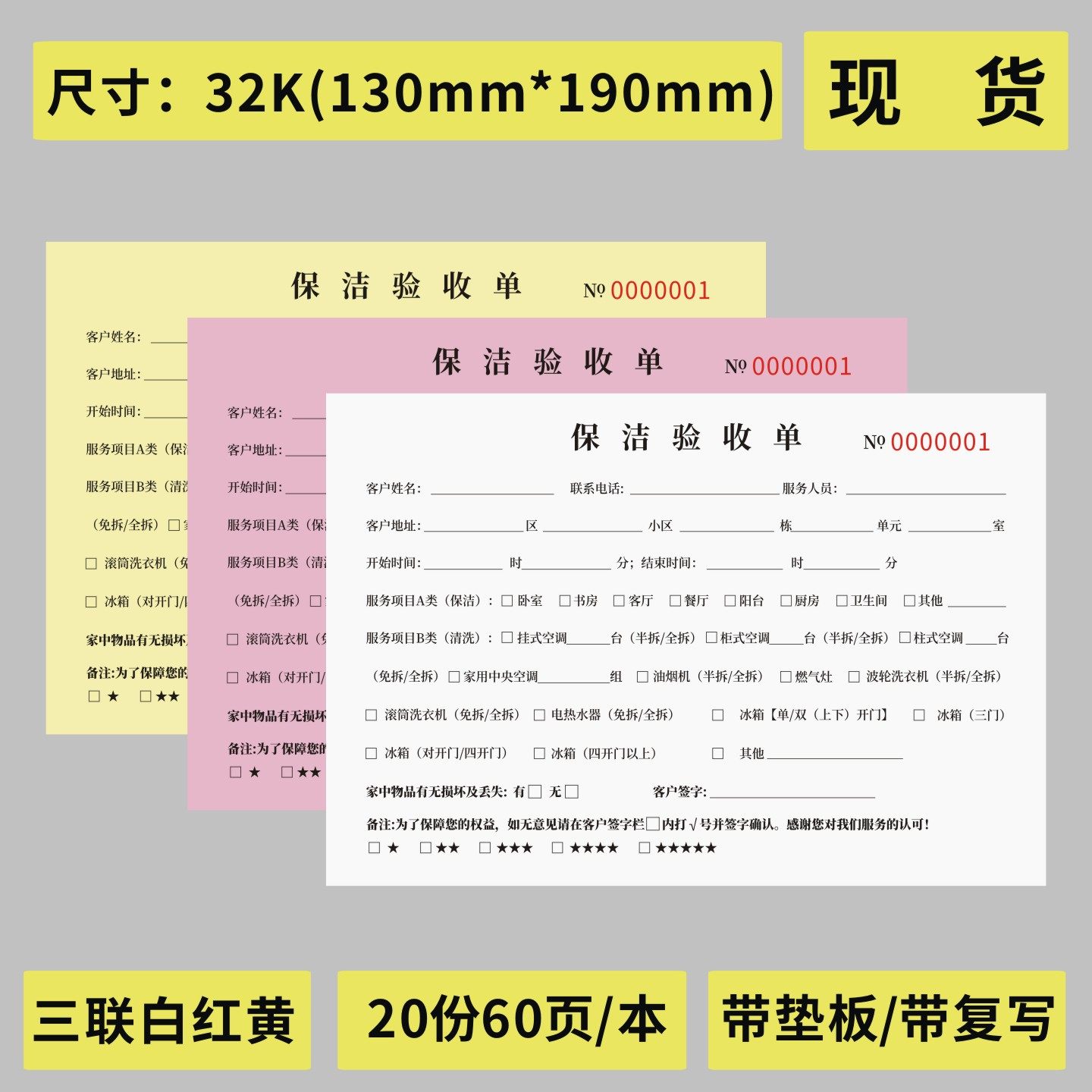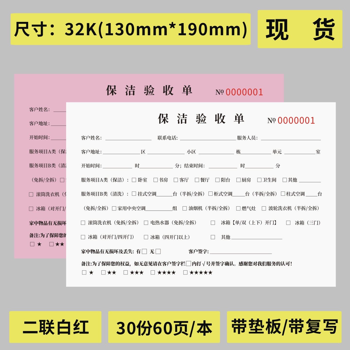 保洁验收单上门保洁清理结算单家政服务合同钟点工清洁清洗凭证表