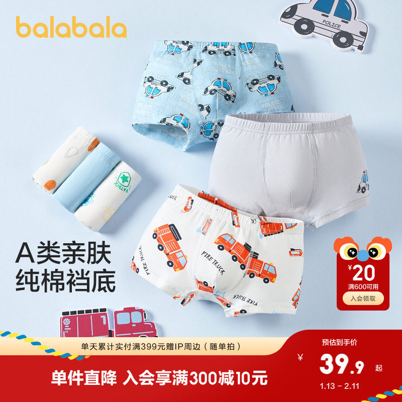 【balaOne】巴拉巴拉儿童内裤棉男童不夹pp抗菌裆四角短裤三条装