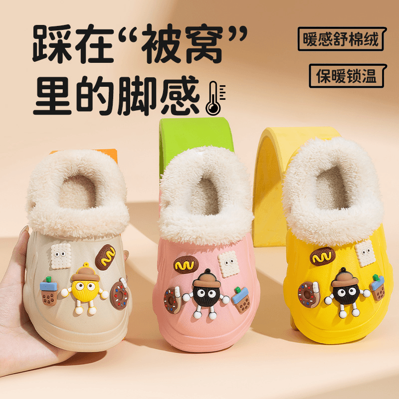 亲子儿童棉拖鞋男女童冬季EVA防滑2025款毛拖鞋半包跟防水可拆卸