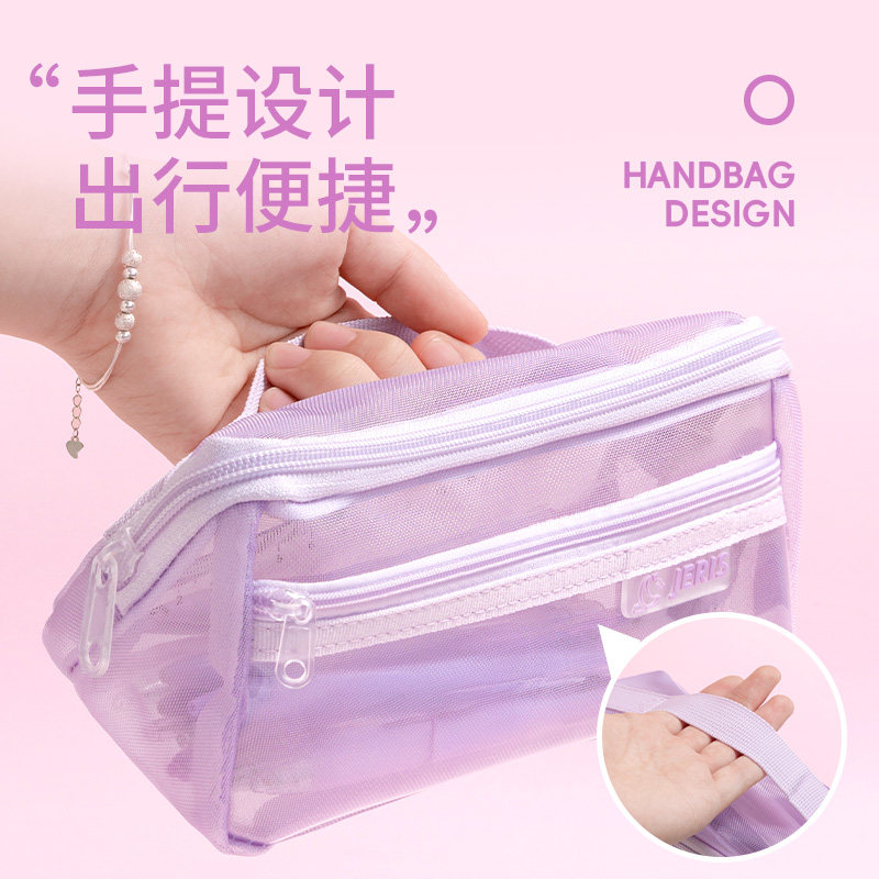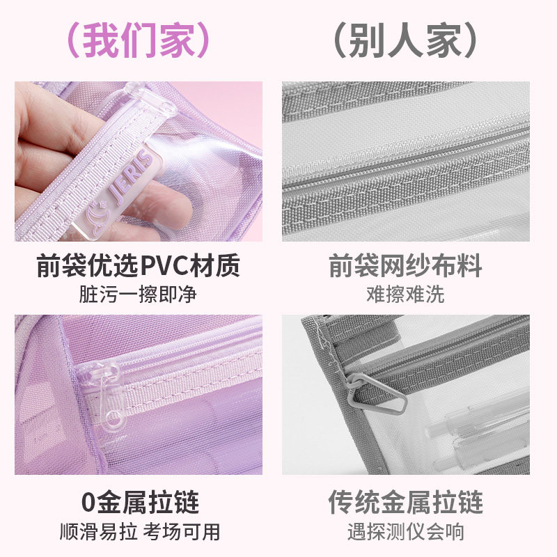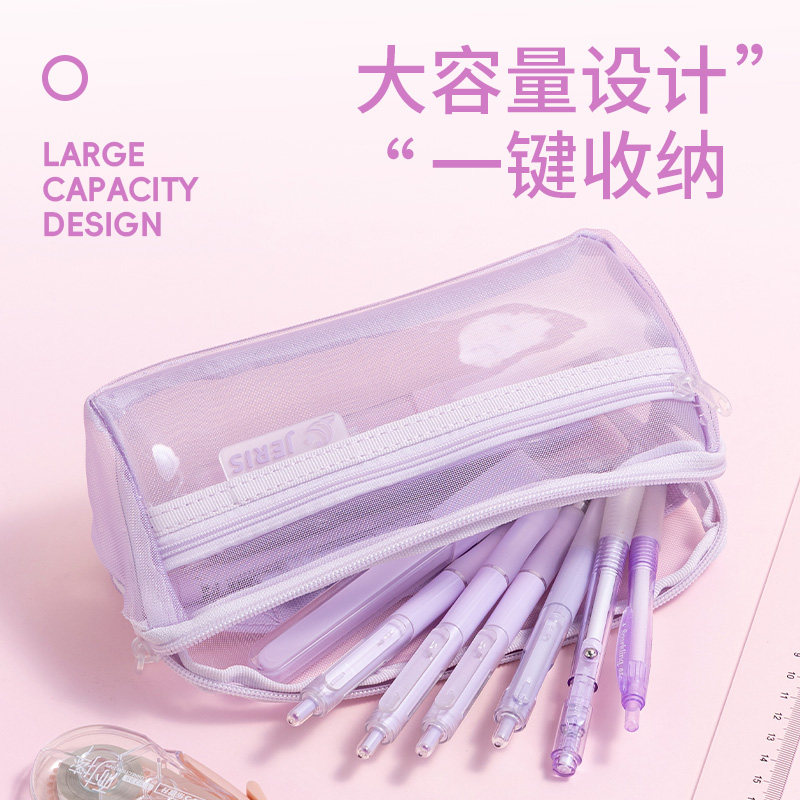 三年二班 环保网纱笔袋高颜值ins风女生2025新款透明大容量简约文具袋小学生考试专用铅笔袋中考高考男孩款