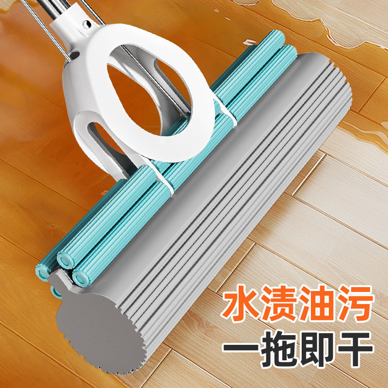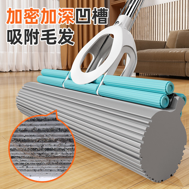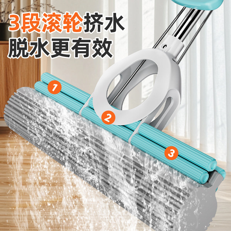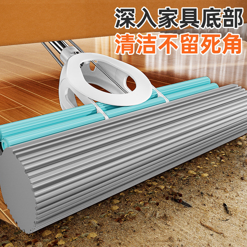 海绵拖把免手洗2025新款一拖家用吸水地拖神器净墩布胶棉头对折式