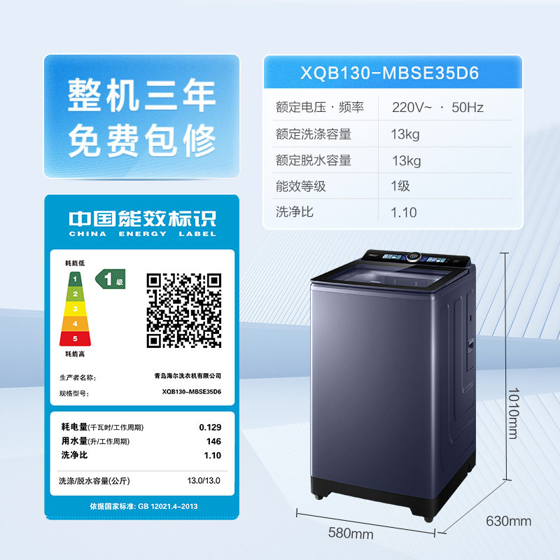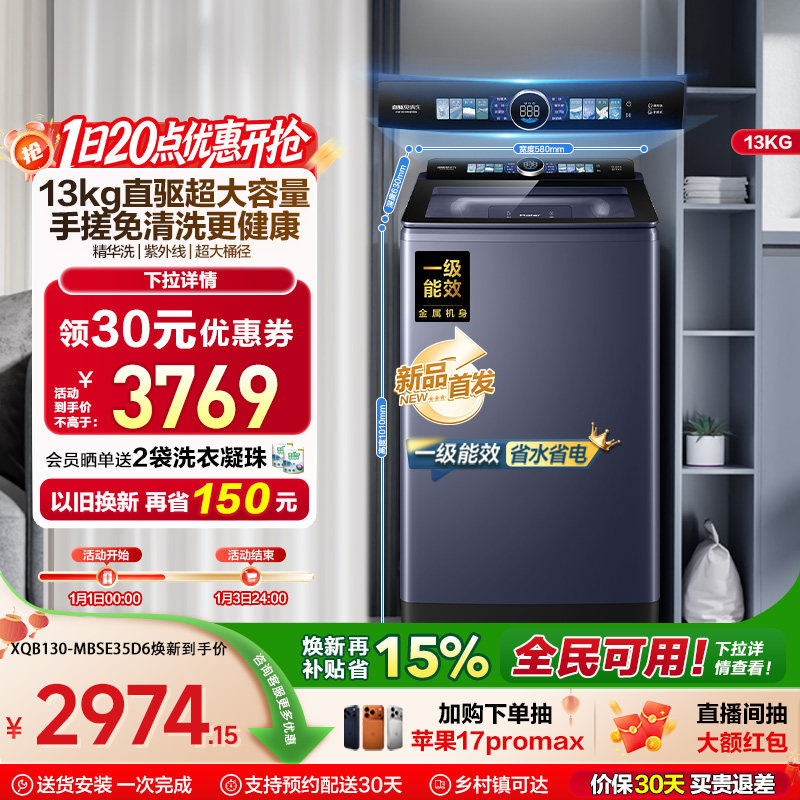 以旧换新|海尔洗衣机波轮家用全自动手搓直驱精华洗除螨35D6