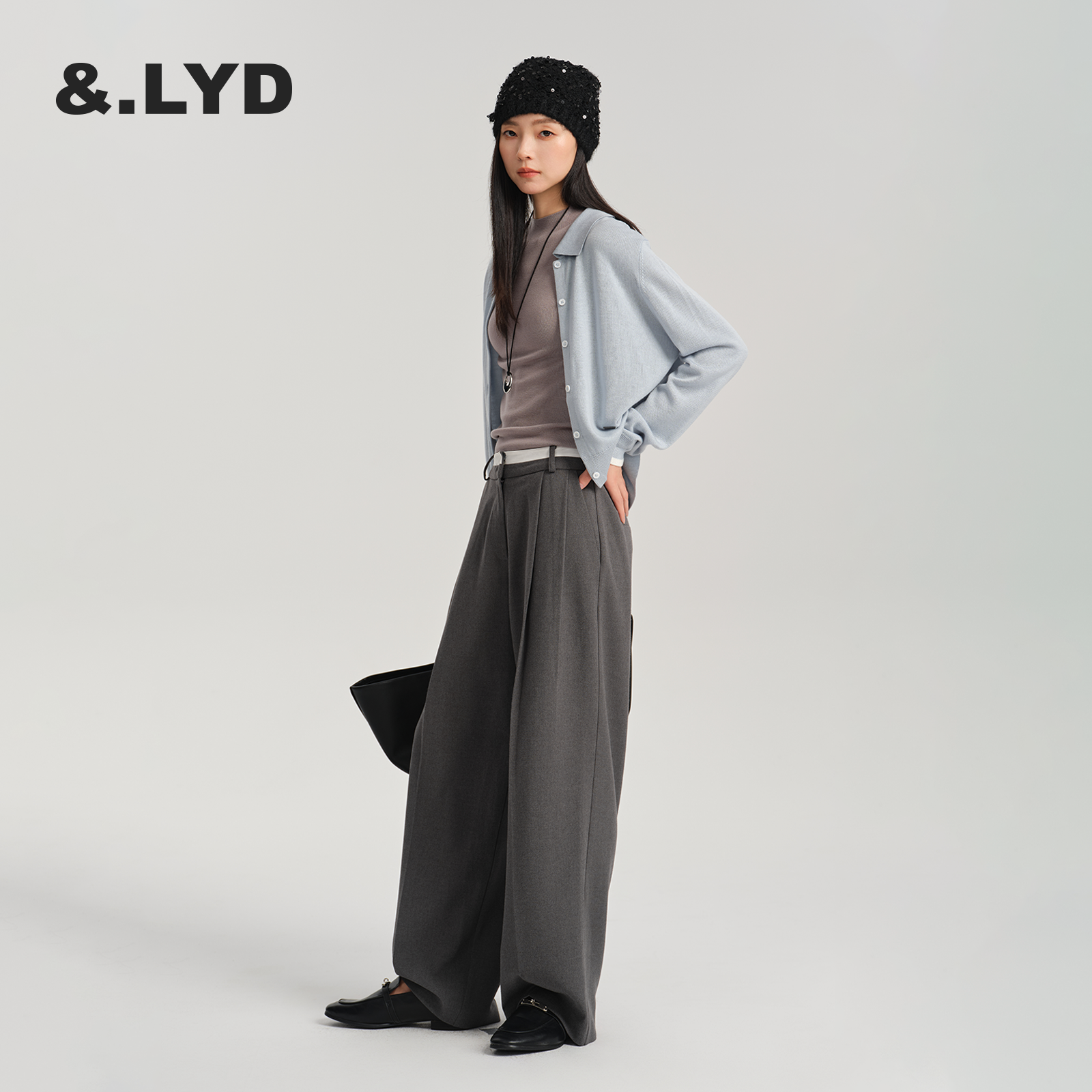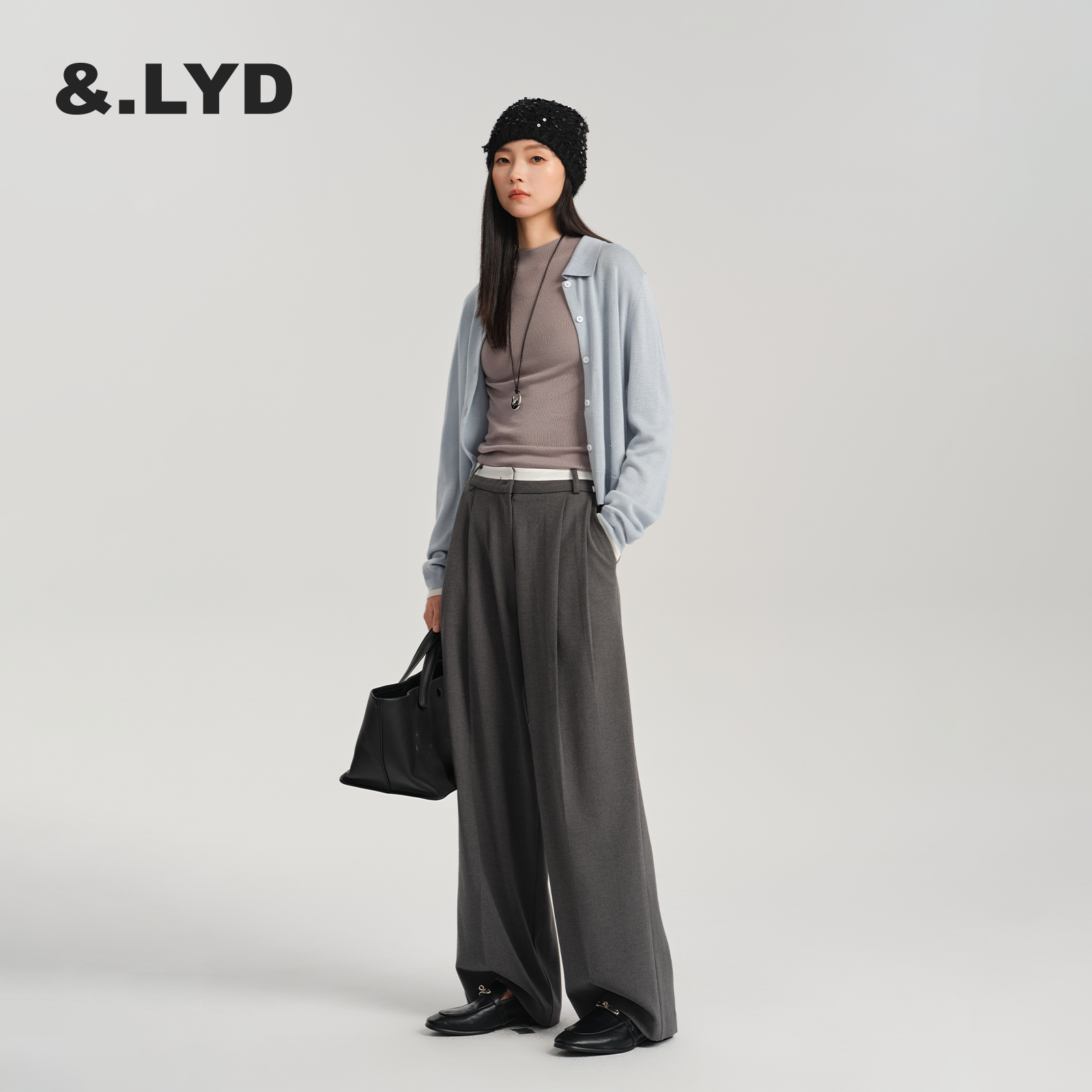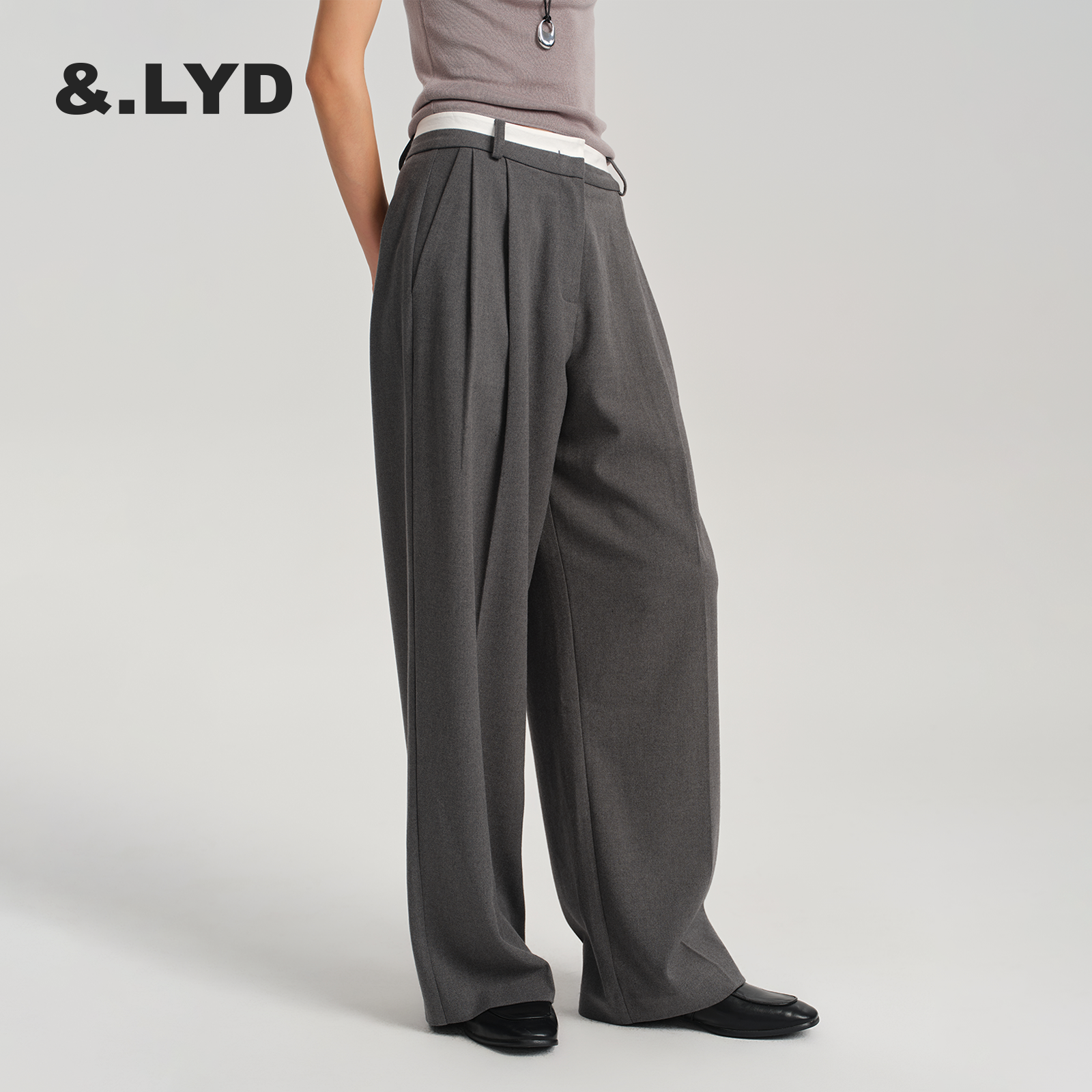 ANDLAYERED高腰双层腰头休闲宽松直筒长裤阔腿裤通勤灰色西装裤