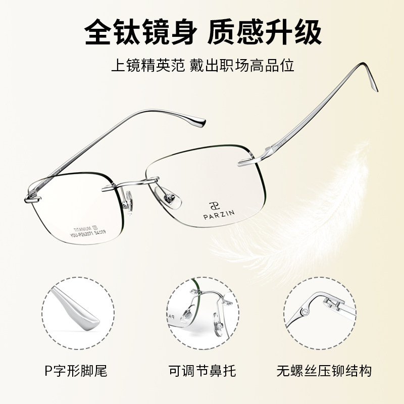 【范丞丞同款】帕森无框钛架男女款轻盈可配读书近视眼镜PZ62071