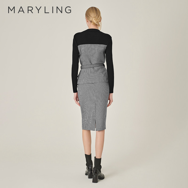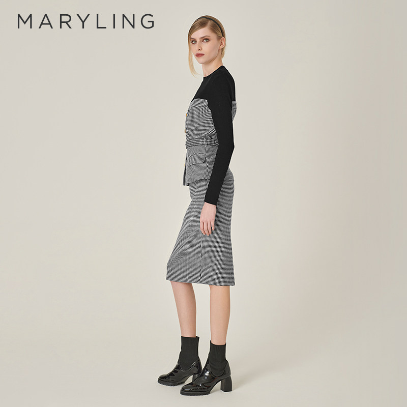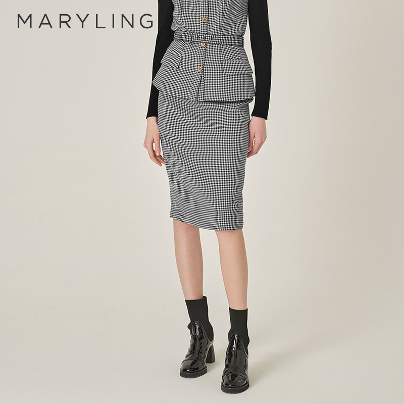 MARYLING玛俪琳秋季新品黑白千鸟格直身包臀半身裙A1EGW72170