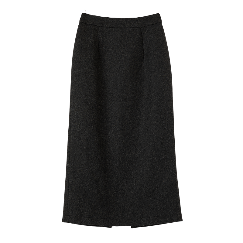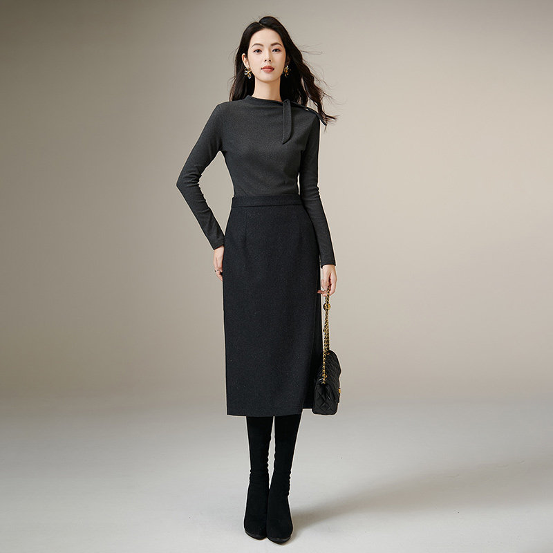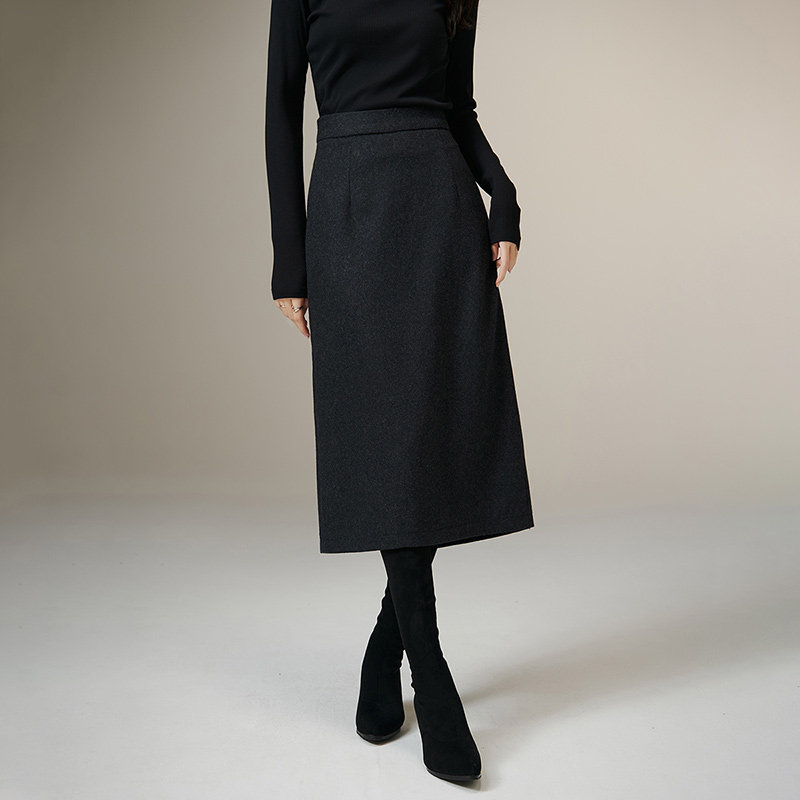 晚白经典深灰色直筒半裙高腰修身气质羊毛包臀半身裙2025新款冬装