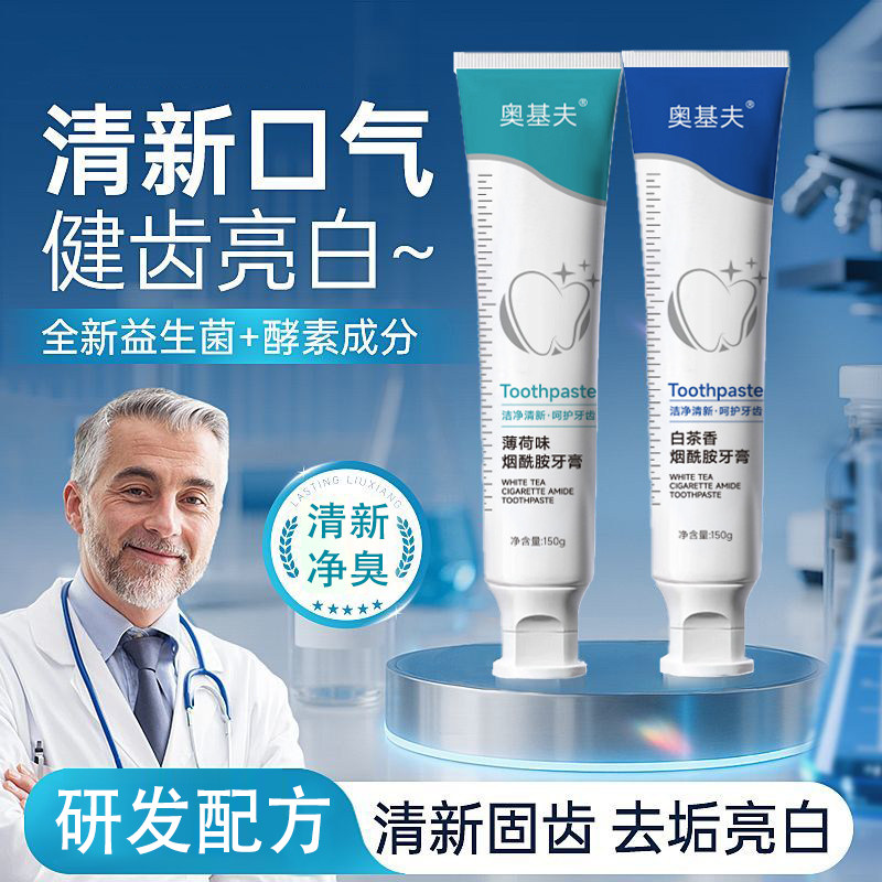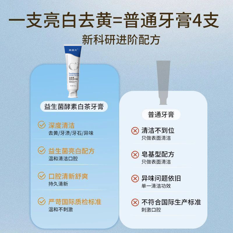 小苏打美白牙膏益生菌酵素去黄口臭成人速效洗白锁白防蛀清新口气