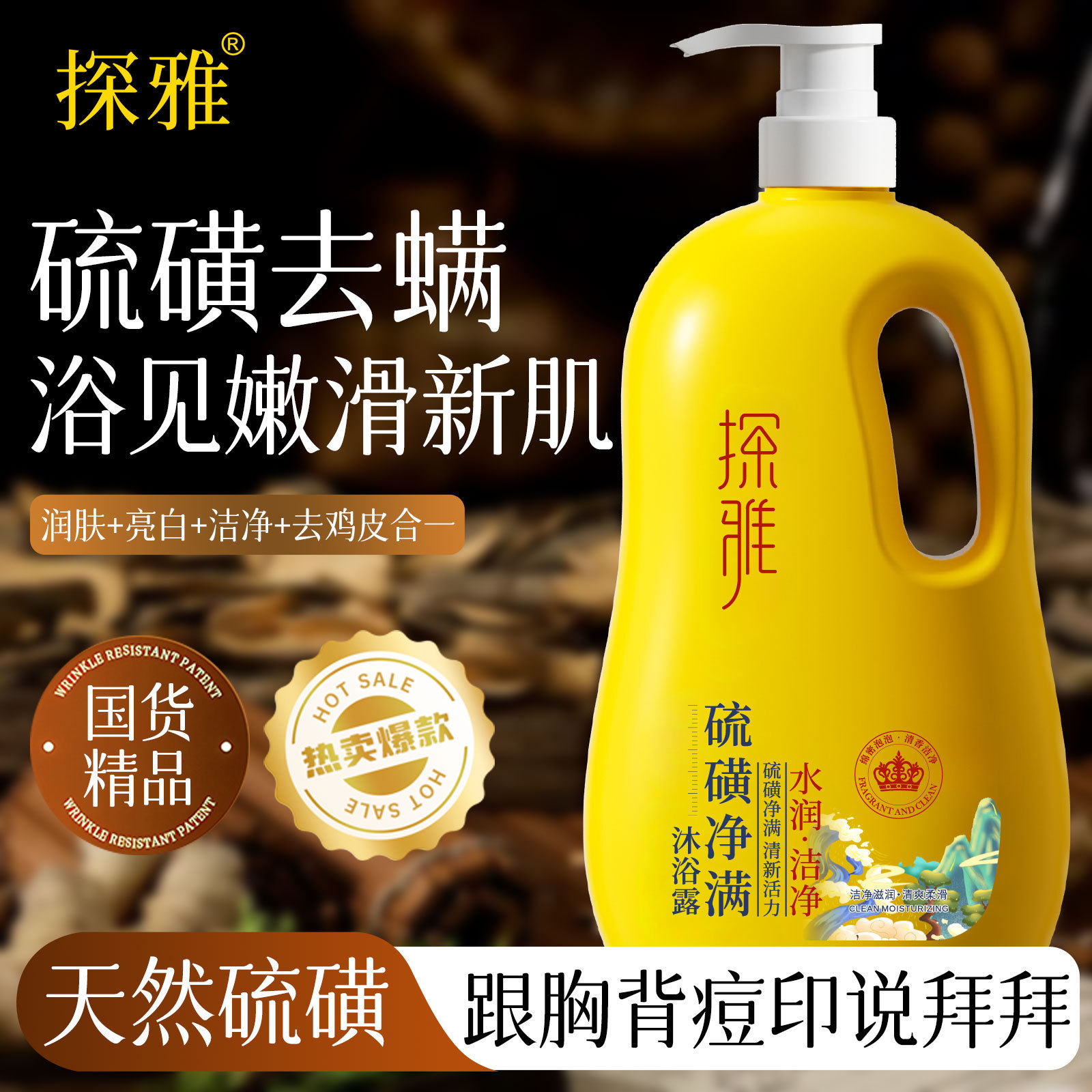 硫磺沐浴露液皂除螨后背祛痘男士女去鸡皮保湿止痒洁净乳持久留香