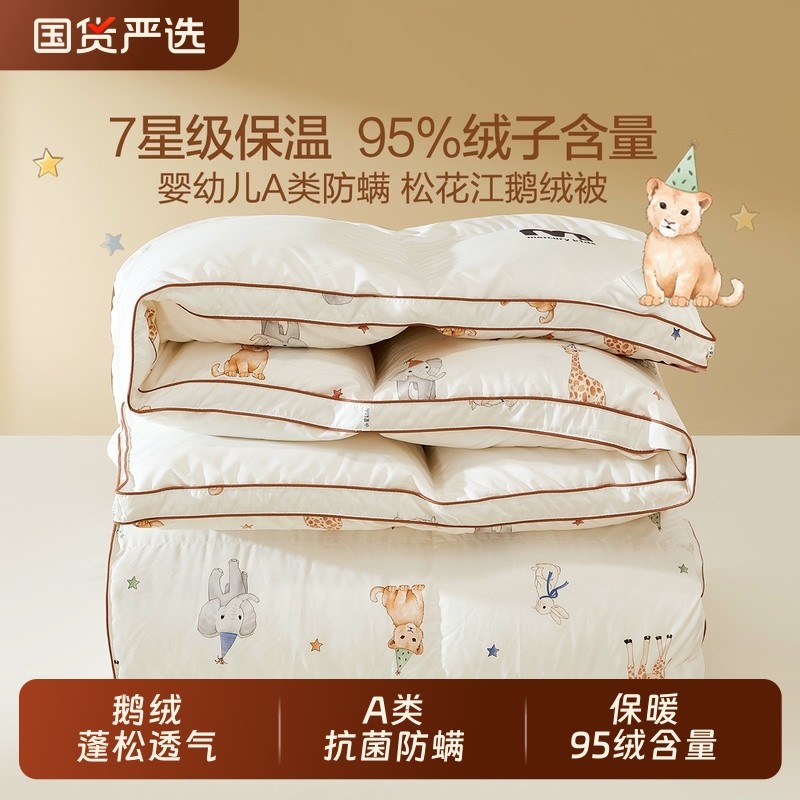 水星儿童95白鹅绒冬被子加厚羽绒被A类可水洗白鸭绒被芯被套床单