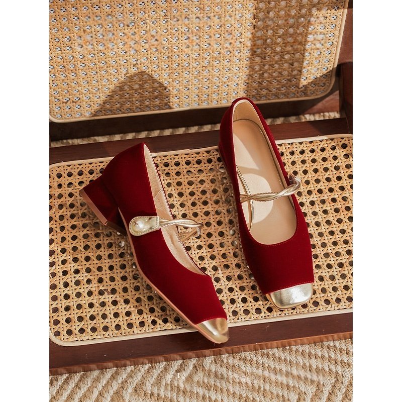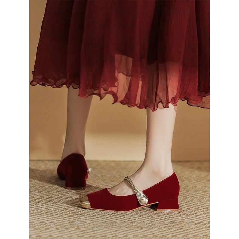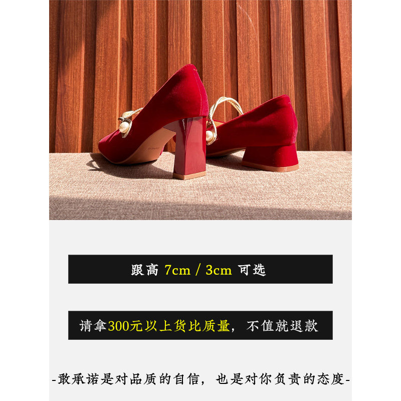 红色单鞋方头粗跟玛丽珍高跟鞋中式秀禾服婚纱两穿新娘婚鞋婚礼