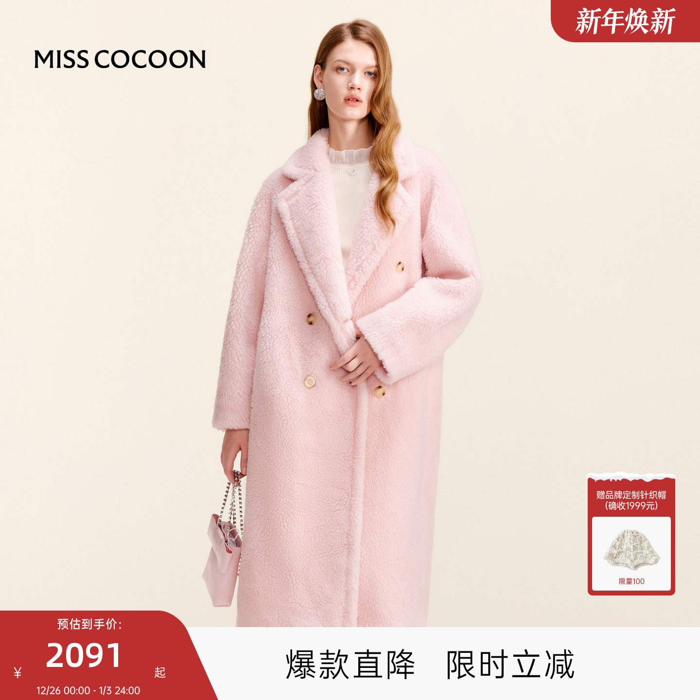 MISSCOCOON可可尼粉色毛毛外套女2025冬季新款收腰绵羊毛皮草大衣
