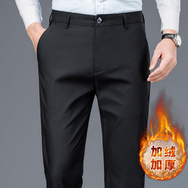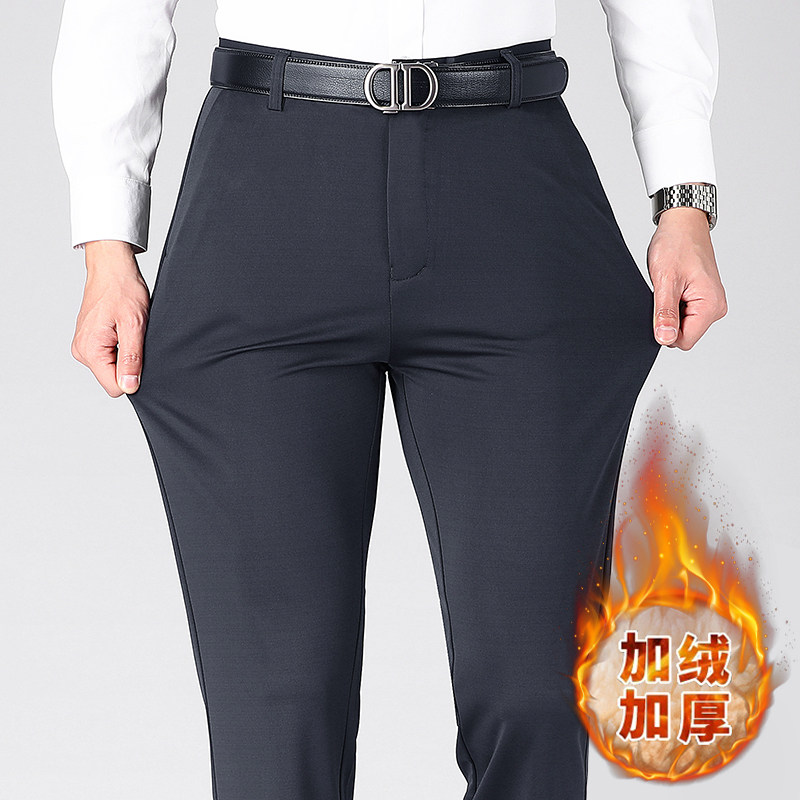 罗蒙加绒加厚男士休闲裤商务休闲秋冬季新款弹力直筒西裤秋冬款