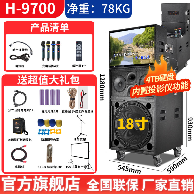 丹唛仕户外K歌音响带显示屏幕投影移动KTV点歌一体机广场舞大音箱