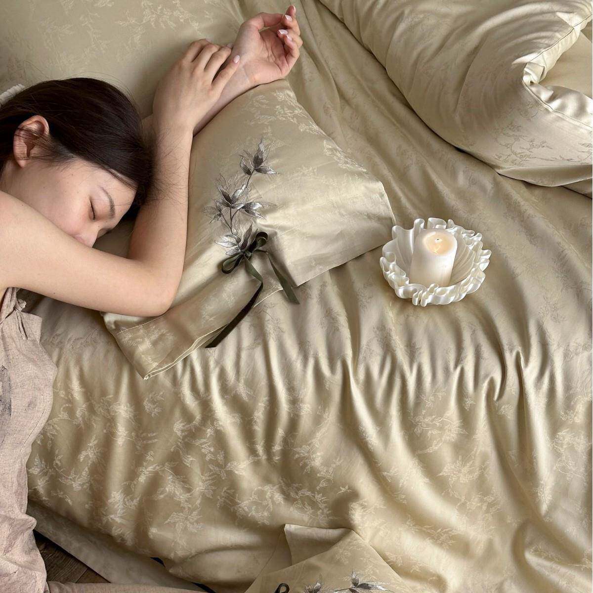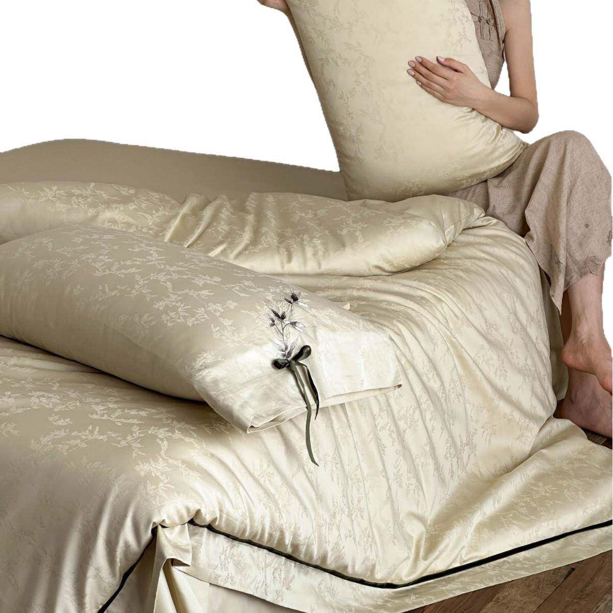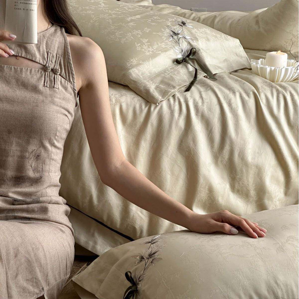 新中式轻奢风长绒棉提花复古全棉丝滑四件套简约秋冬新款家居套件