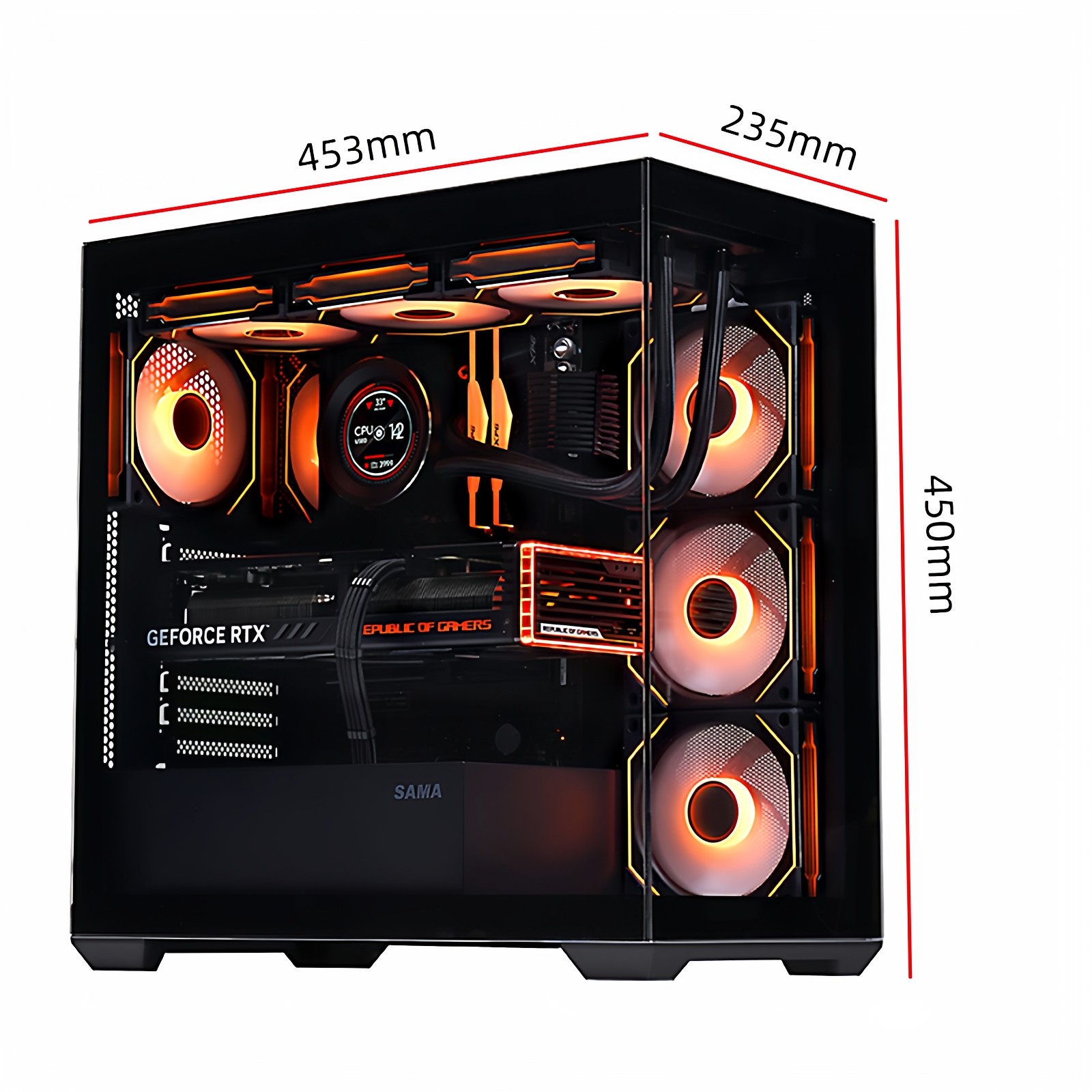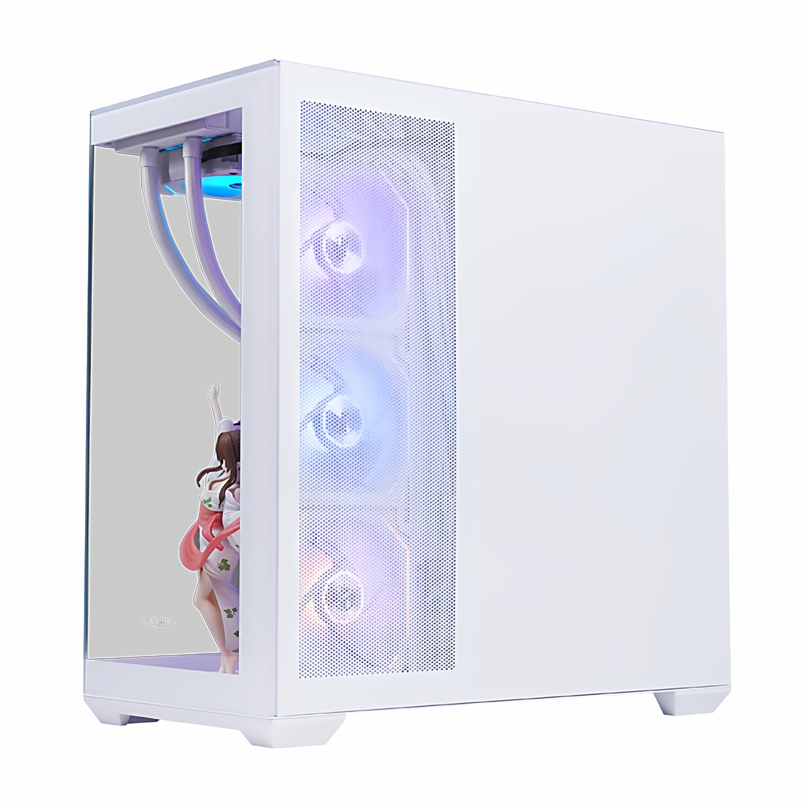 先马掠影电脑机箱海景房无立柱ATX主机机箱360水冷机箱侧透黑白色