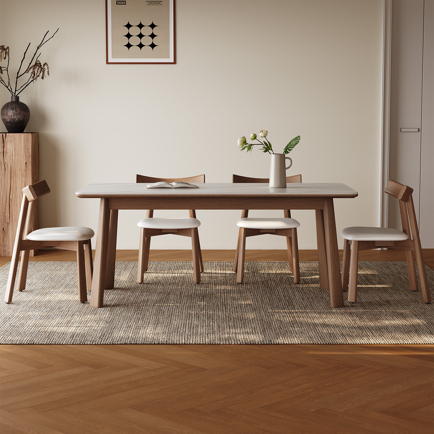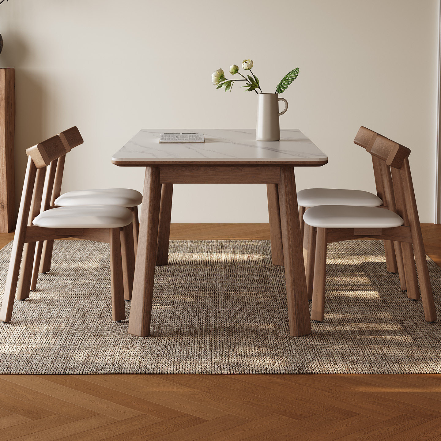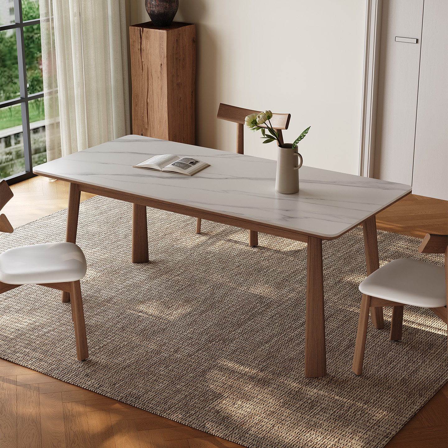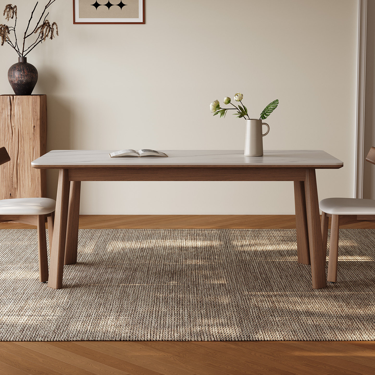 中古风实木餐桌长方形胡桃色高端橡胶木现代简约新款哑光岩板餐桌