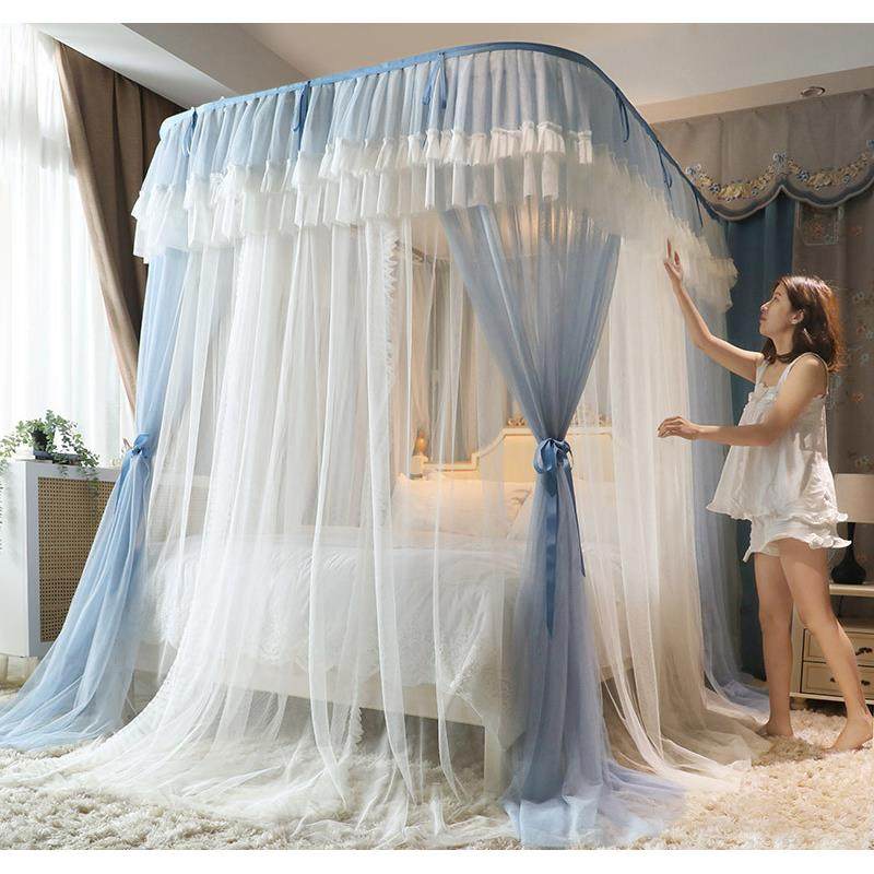 夏季新款双层纱U型导轨落地蚊帐宫廷风单双人床三开门床幔