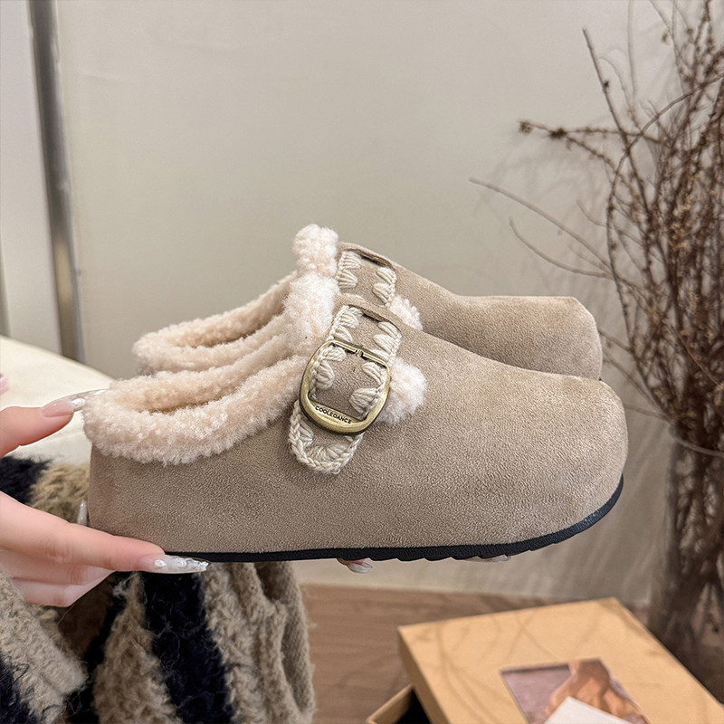 叁叔家~内增高勃肯鞋女加绒秋冬保暖毛毛半拖外穿厚底博肯鞋