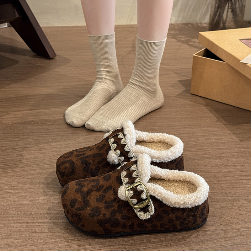 真皮~厚底勃肯鞋女秋冬包头半拖鞋外穿加绒内增高棉拖鞋大码女鞋