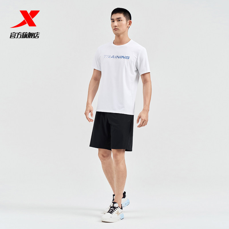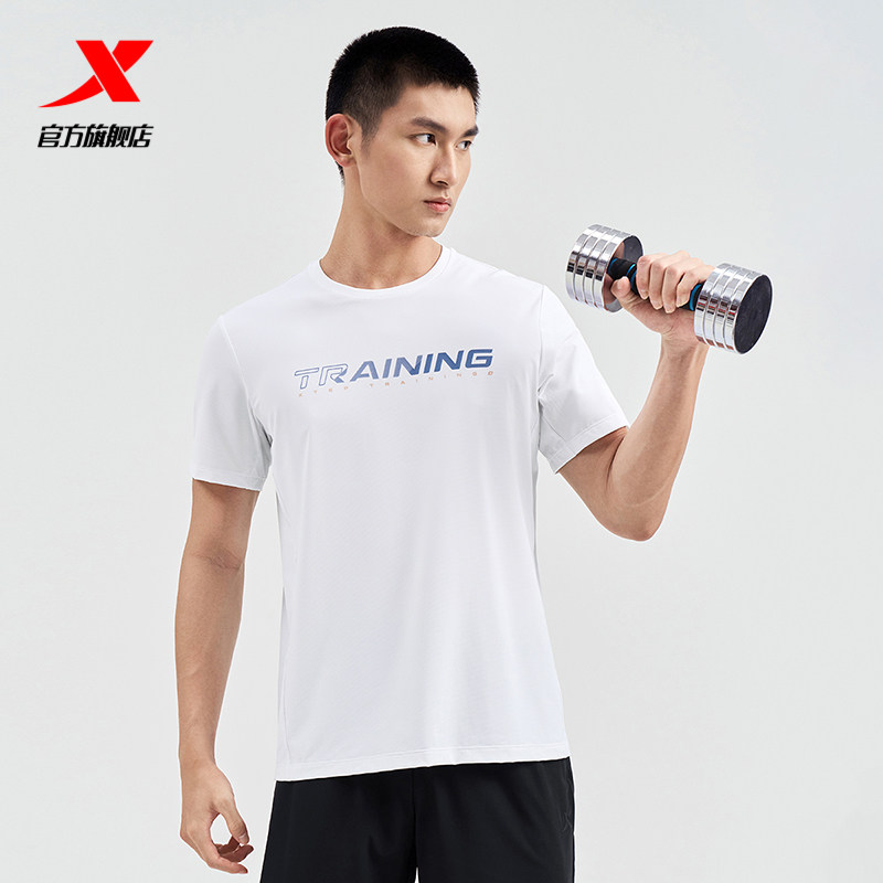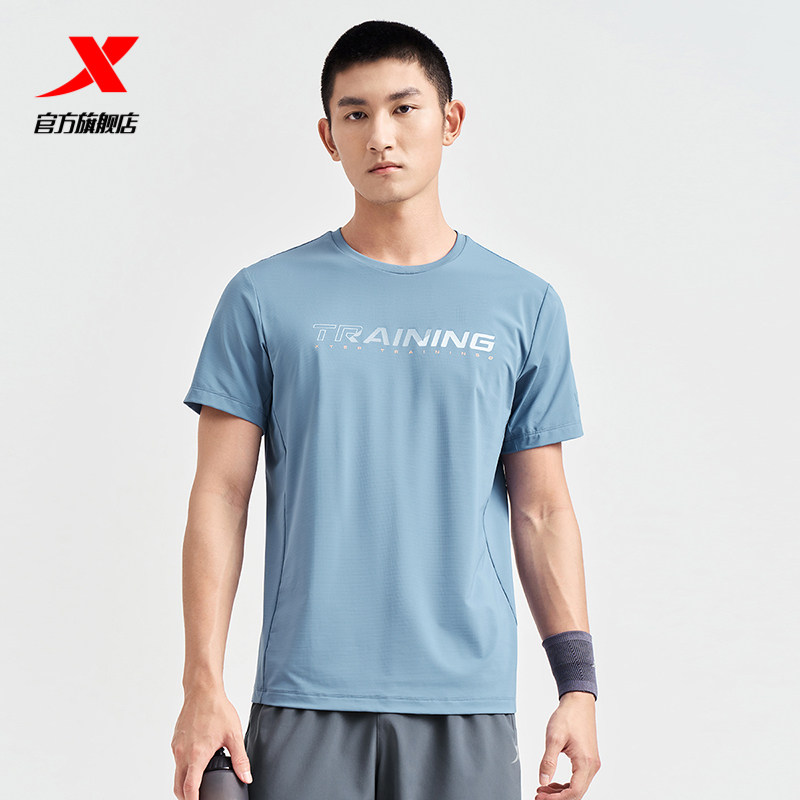 特步速干T男夏季宽松短袖冰丝户外跑步T恤透气上衣男士健身运动服