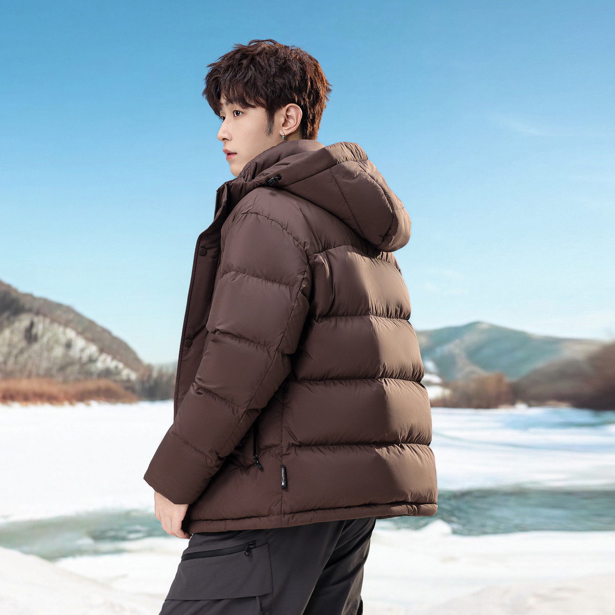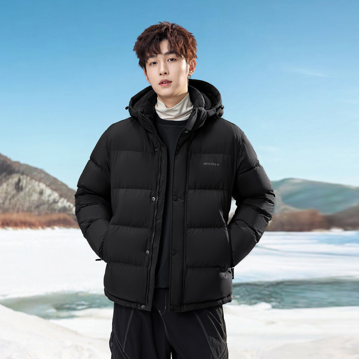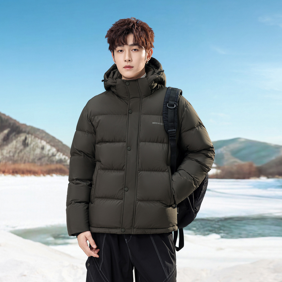 骆驼黑钻5 男装羽绒服防风拒水面包防寒服时尚连帽短款外套秋冬男