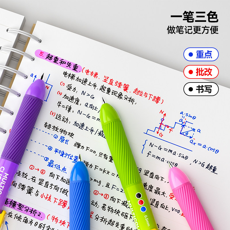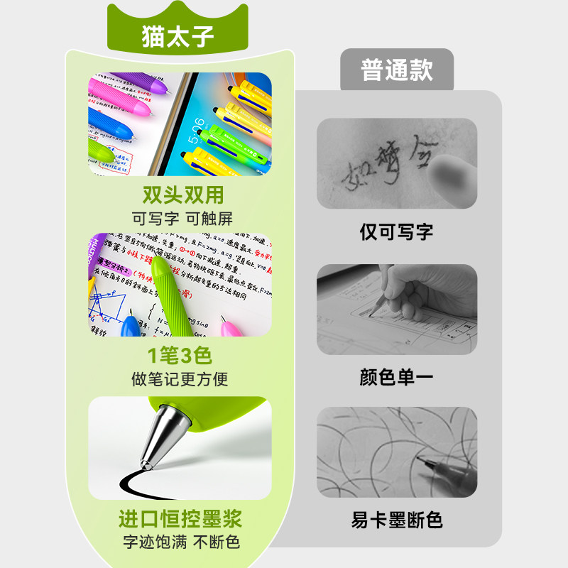 猫太子中性笔触屏笔蓝红黑三色合一高颜值笔记作业2025超火笔神器
