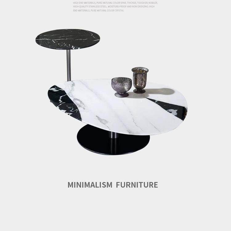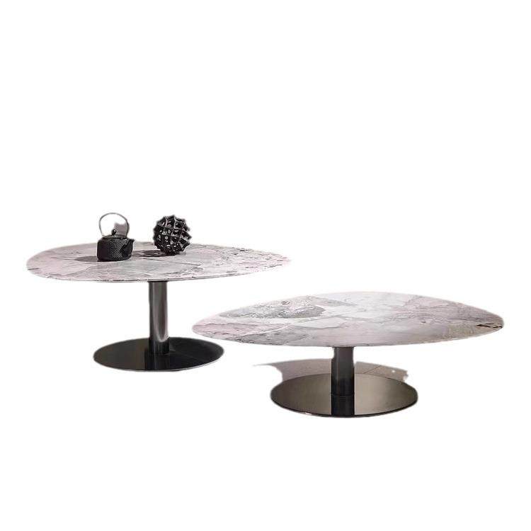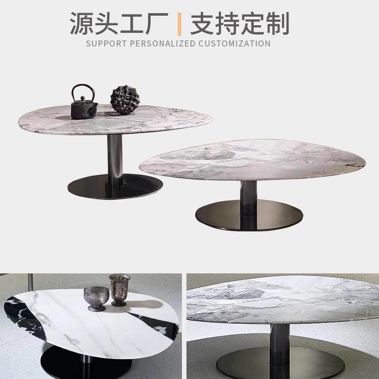 天然大理石椭圆形不锈钢茶几现代轻奢奢石茶几组合小户型奥利奥灰